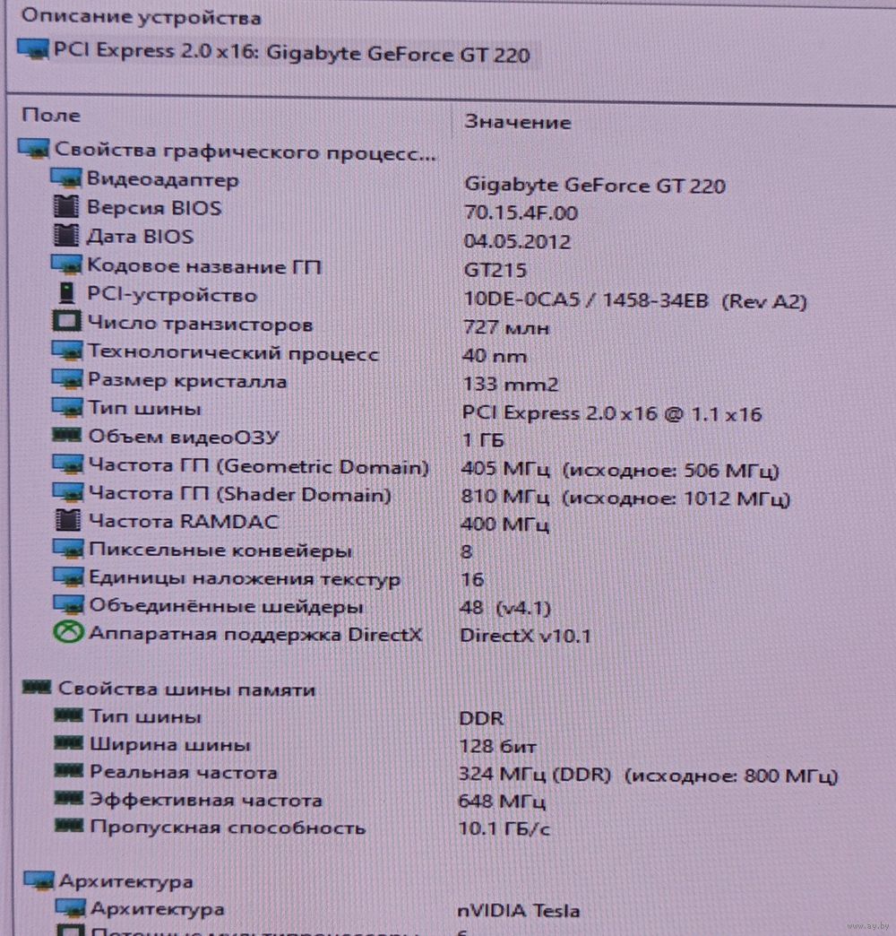 Графический процессор: NVIDIA GeForce GT 220 (GT216).