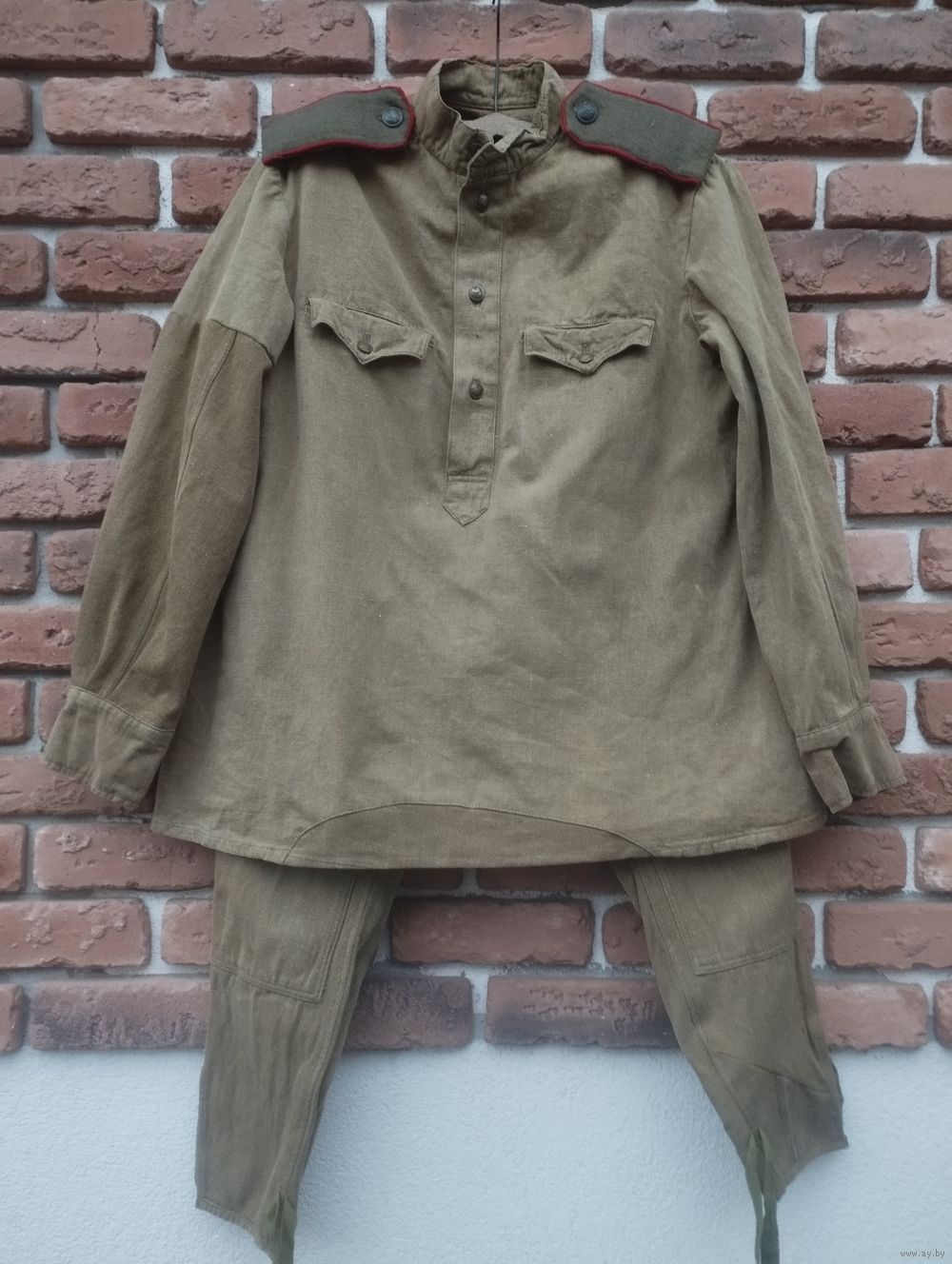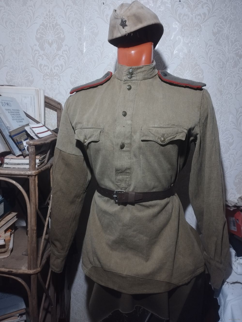 Комплект: гимнастерка с погонами и галифе, пилотка и ремень.