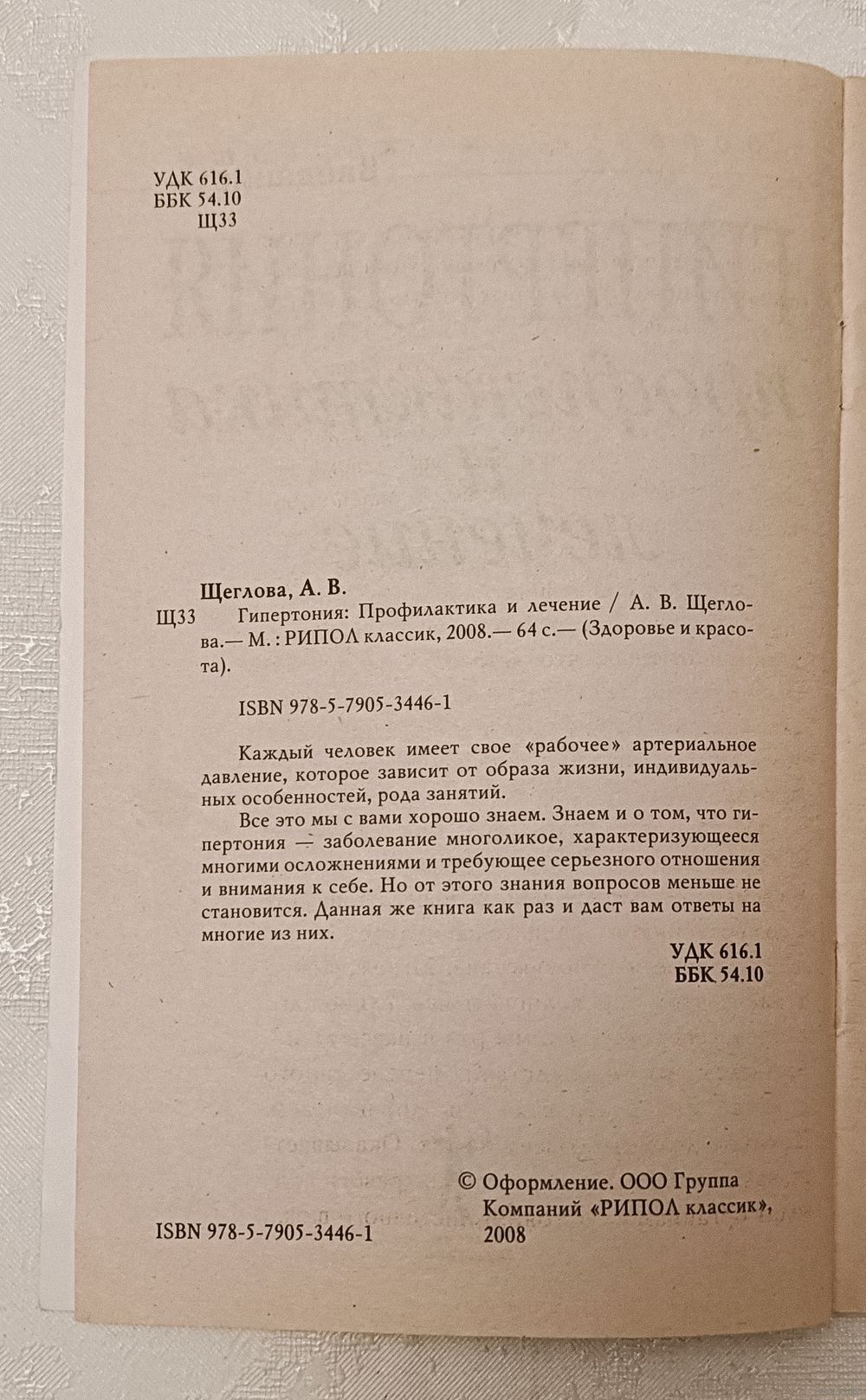 Гипертония: Профилактика и лечение. Анна Щеглова. - М.: РИПОЛ классик, 2008. — 64 с. — (Здоровье и красота), мягкая обложка.
