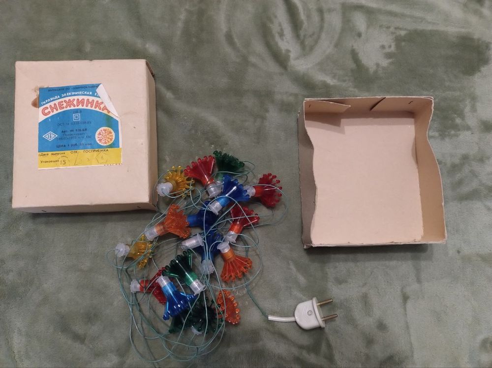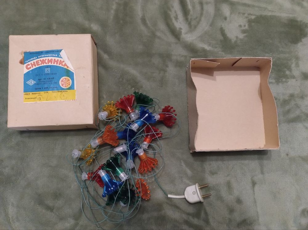 Гирлянда Снежинка СССР елочная украшение. Работоспособность неизвестна, так как не подходит ни к одной розетке в доме вилка