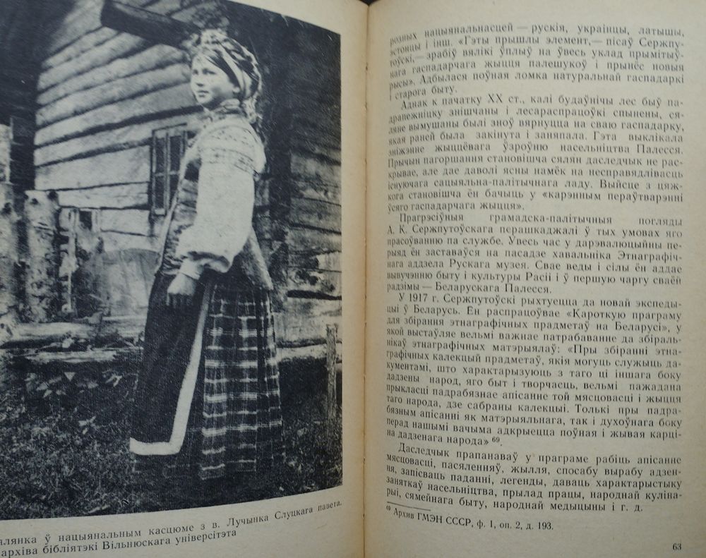 Тыраж 1000 экз. 124 стар. Праца прадстаўляе сабою першы у айчыннай навуцы вопыт сістэматызаванага ізлажэння гісторыі беларускай этнаграфіі эпохі капіталізму. Развіццё беларускай этнаграфіі разглядаецца ў цеснай сувязі з рускай і польскай этнаграфічнай навукай і грамадска-палігычным рухам таго часу. У кнізе, у прыватнасці, даецца аналіз дзейнасці буйнейшых беларускіх, рускіх, украінскіхі польскіх вучоных (П. В. Шэйна, Е. Р. Раманава, М. Я. Нікіфароўскага, М. Федароўскага, Д. М. Анучына, С. В. Максімава, П. П. Чубінскага, У. М. Дабравольскага, Я. Чачота, Я. Карловіча, У. Вярыгі, Ю. Крашэўскага, У. Сыракомлі і многіх іншых), а таксама дзейнасці навуковых устаноў і таварыстваў (Акадэміі навук, Рускага геаграфічнага таварыства, Таварыства аматараў прыродазнаўства, антрапалогіі і этнаграфіі і інш.) па этнаграфічнаму вывучэнню беларусаў.