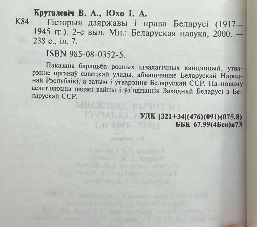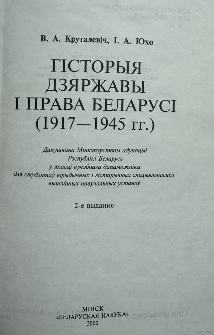 Гісторыя дзяржавы і права Беларусі 1917-1945 гг. Круталевіч Юхо