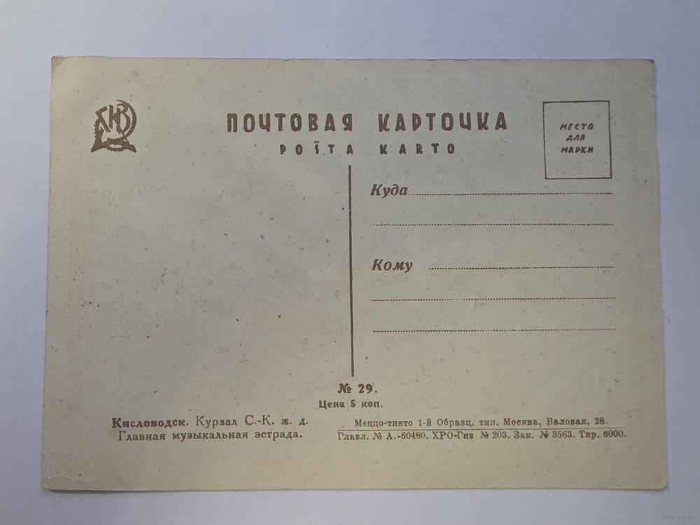 Главная музыкальная эстрада. Кисловодск. Чистая. Почтовая карточка 1920е - 1930е годы.