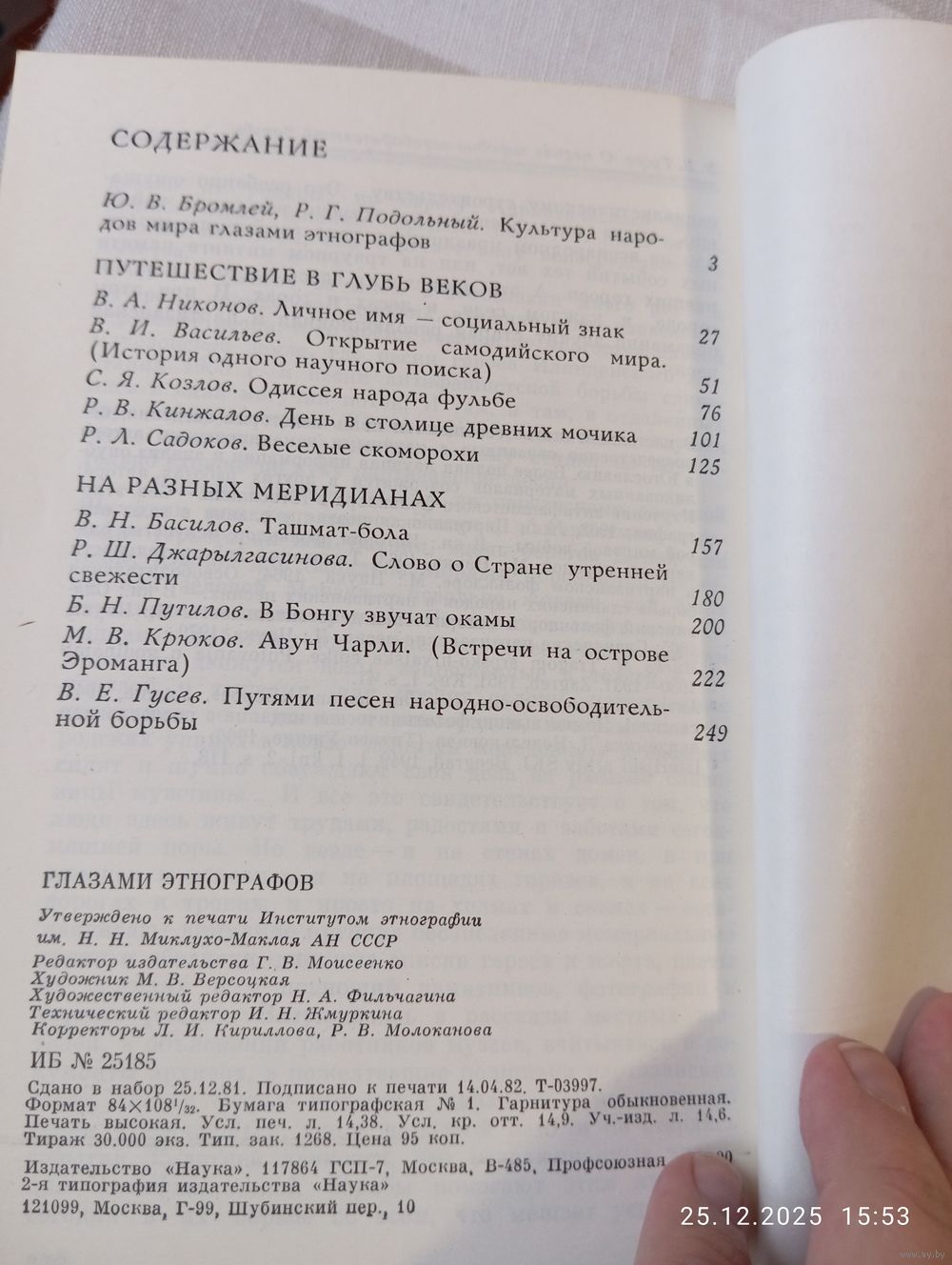 Глазами этнографов. Сборник. М. Наука 1982. В хорошем состоянии, мягкая обложка. 272 с. Иллюстрации. Возможность отправки Белпочтой, полная предоплата