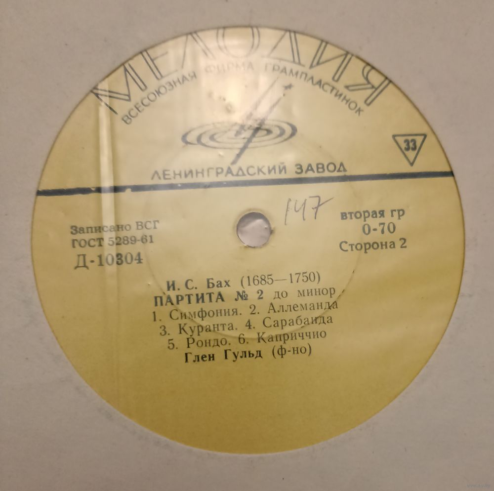 Глен Гульд, И.С. Бах – Итальянский концерт Фа Мажор / Партита Nr 2 До Минор (10")