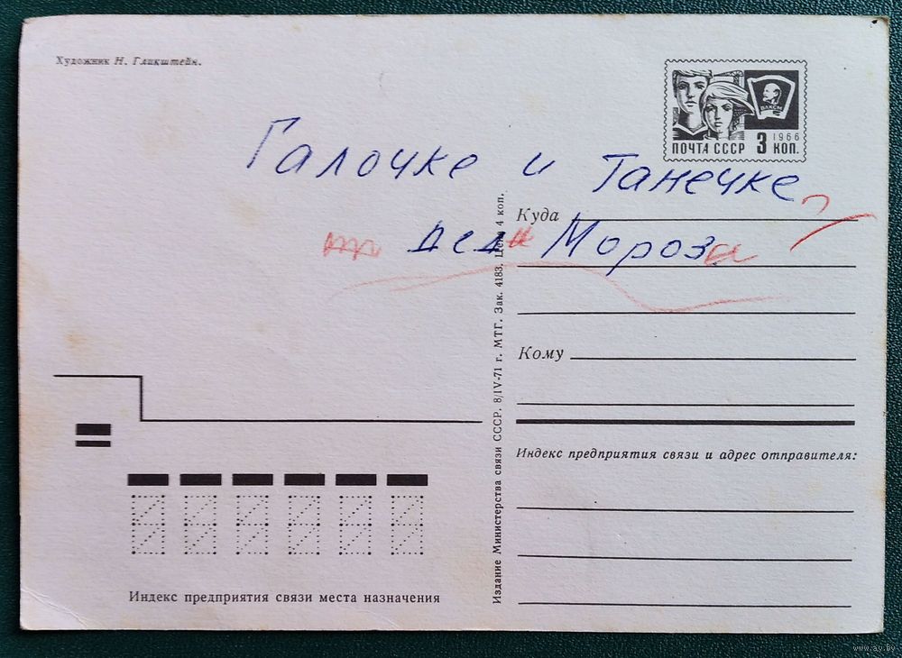 Гликштейн Н. С Новым Годом! 1971 г. ПК. Подписана.