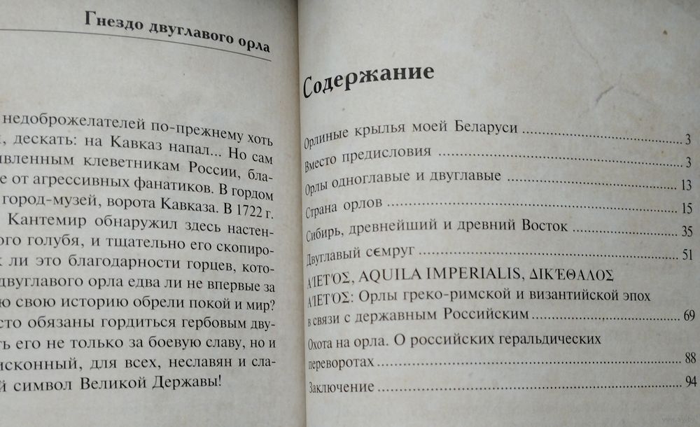 Большой формат. Тираж 2000 экз. В предлагаемом читателю исследовании доктора исторических наук профессора С. Е. Рассадина приводятся основанные на археологических находках и достоверных исторических письменных источниках доказательства отечественного (т.е. имеющего свои корни на территории современной Российской Федерации) происхождения двуглавого орла, встречавшегося в государственной символике Византии, империи Габсбургов, Австрии, Албании, Сербии. Значительная часть книги посвящена белорусской «страничке» в истории этого геральдического символа. Для историков, археологов, геральдистов и всех любителей старины.