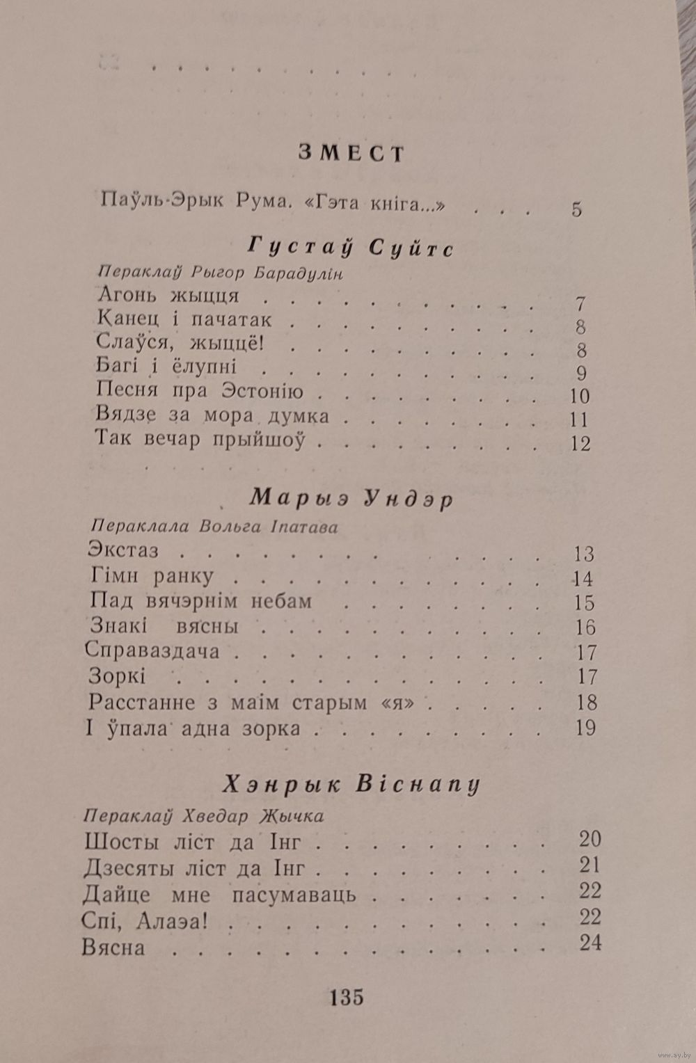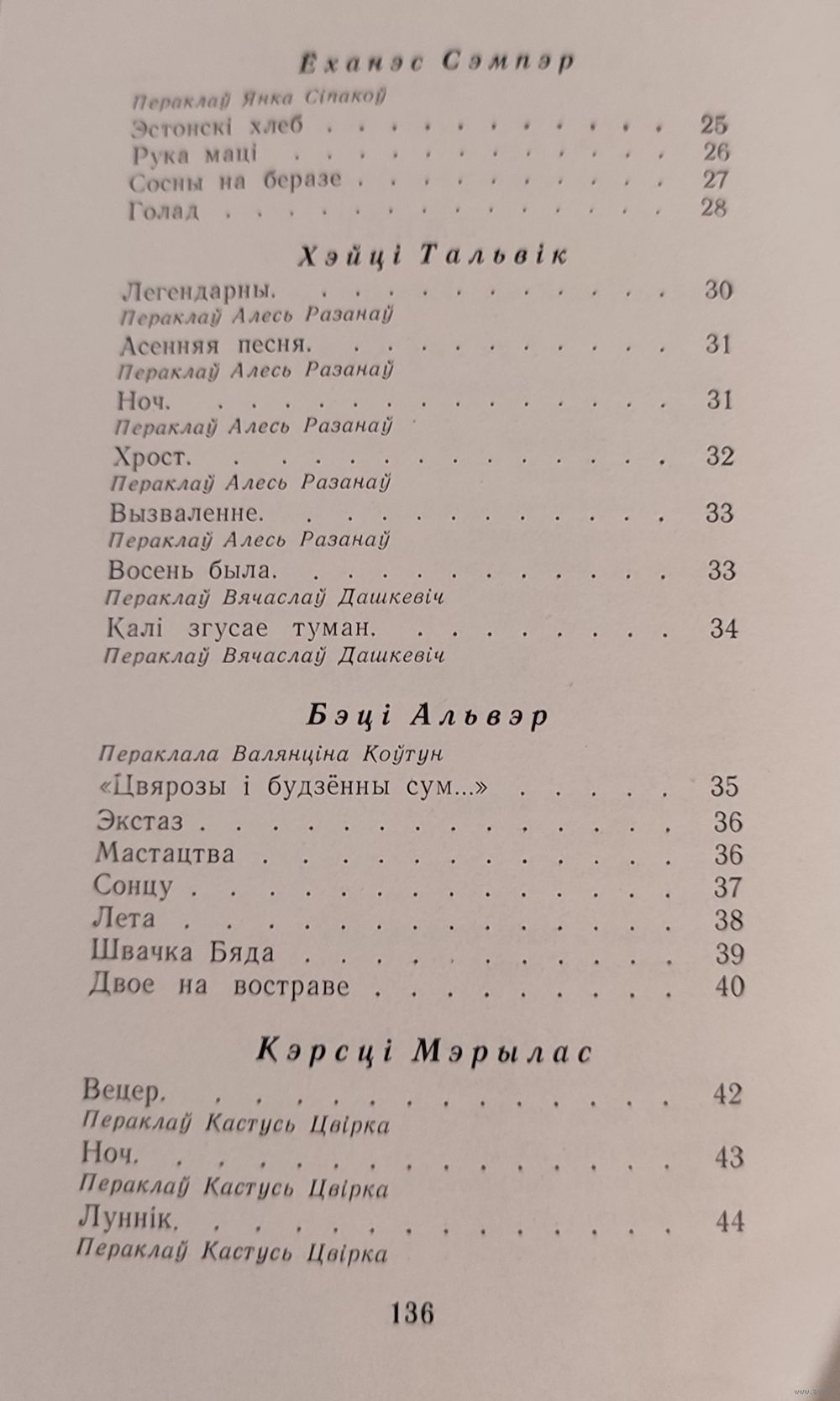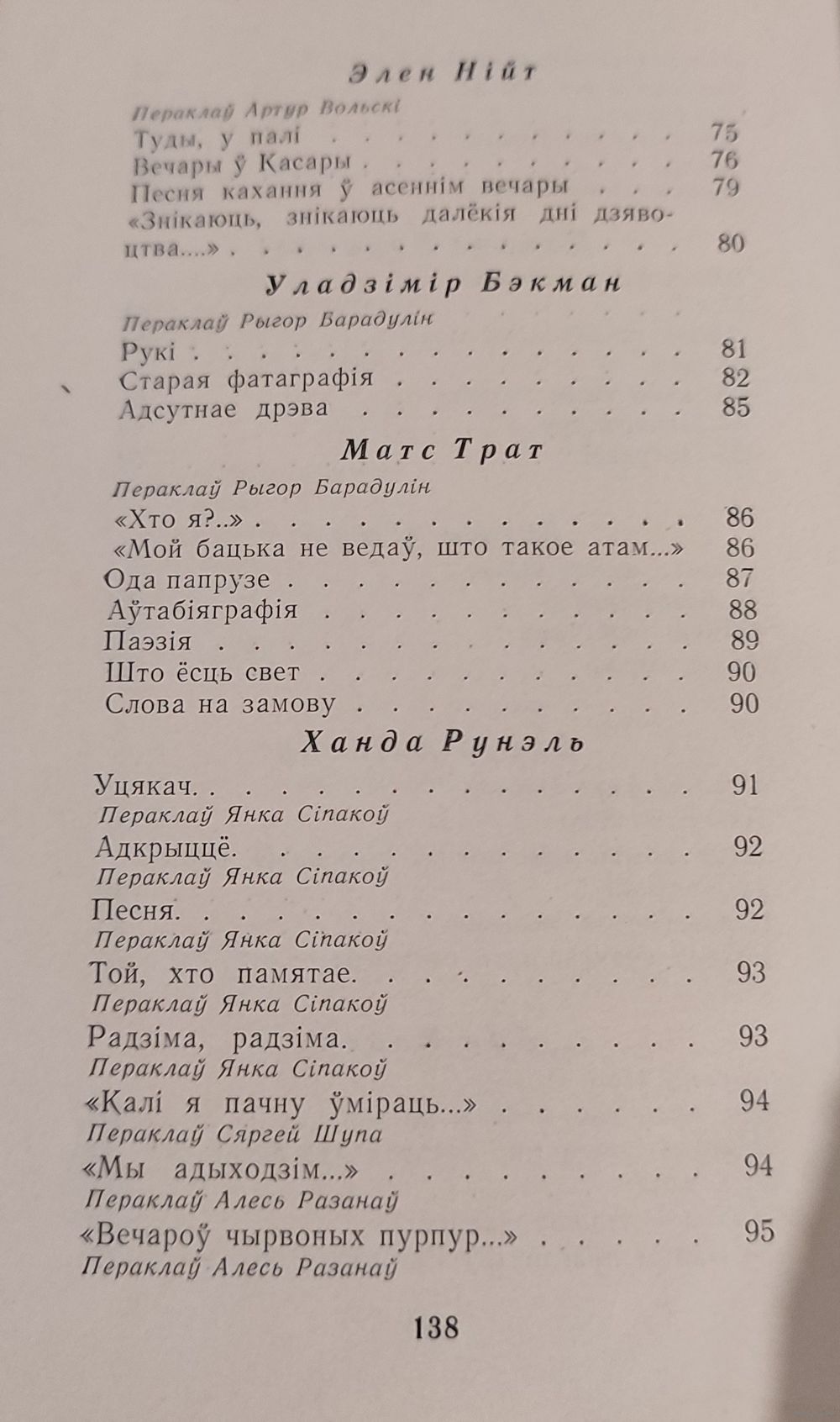 Пераклады А. Разанава, Р. Барадуліна, Я. Сіпакова, С. Шупы, В. Іпатавай, В. Коўтун, К. Камейшы і інш.