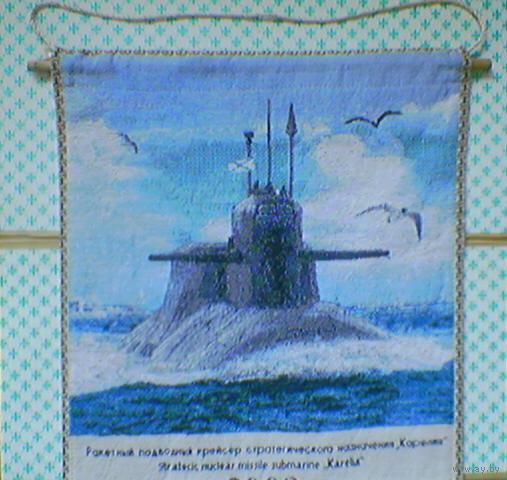 Гобелен-вымпел "Ракетный подводный крейсер стратегического назначения К-18 "Карелия"" ("Центр судоремонта" "Звездочка", г. Северодвинск, Архангельская область). Размеры примерно 66х32см.