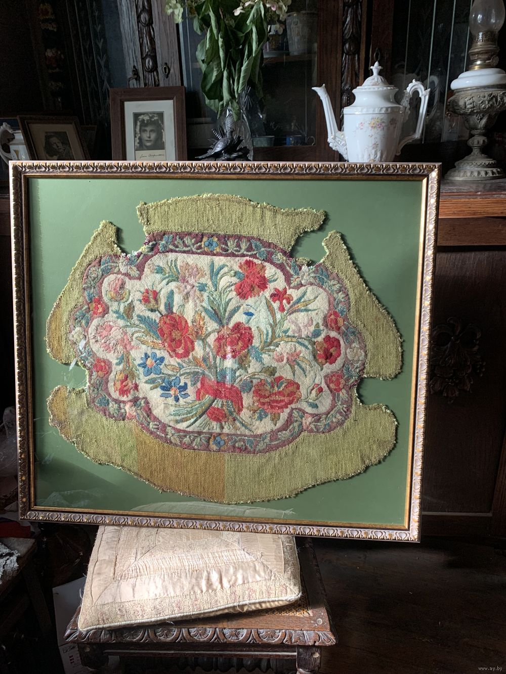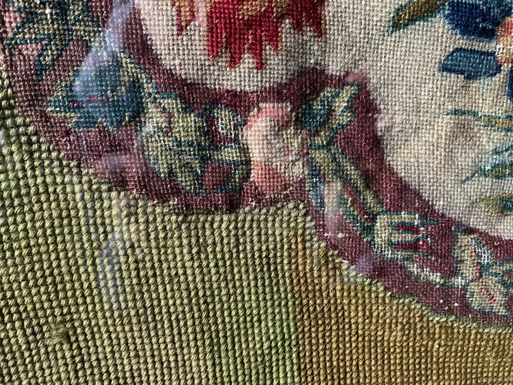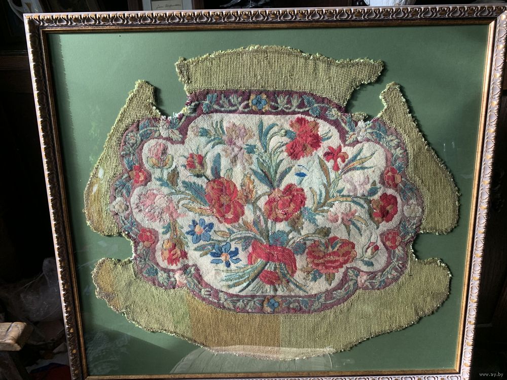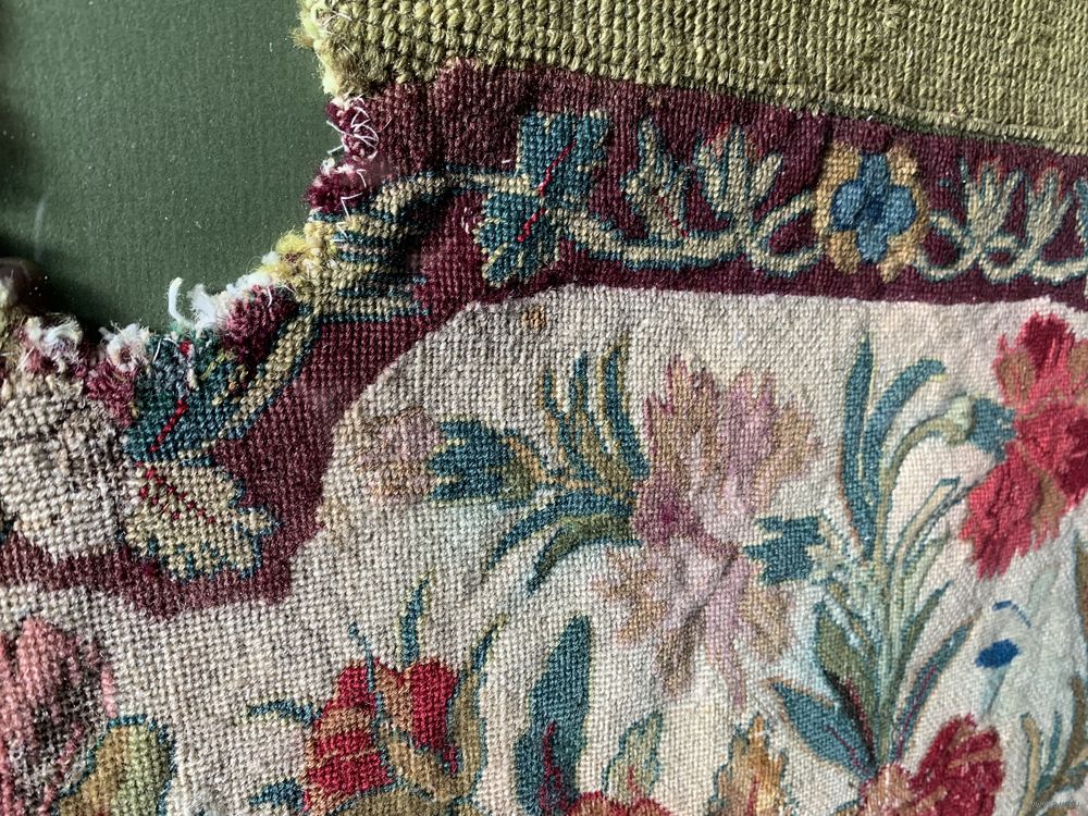Настоящий, подлинный французский гобелен середины 19 века, ручной работы. Куплен в Париже. Яркие краски первоначального вида! Дорого и правильно оформлено. 82 на 73 см