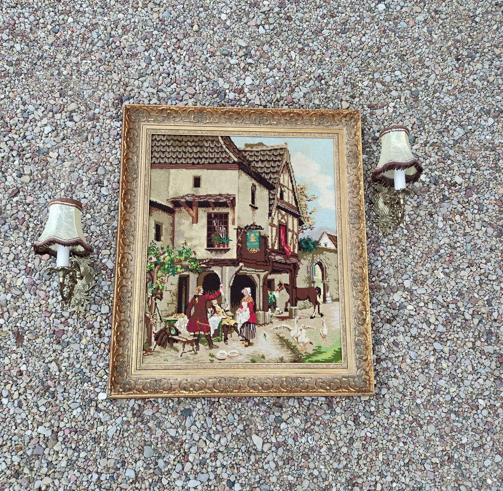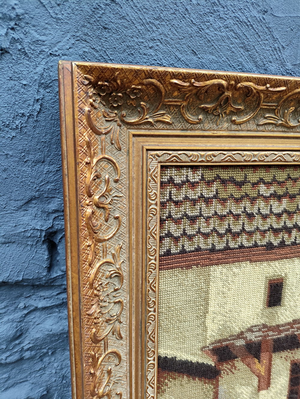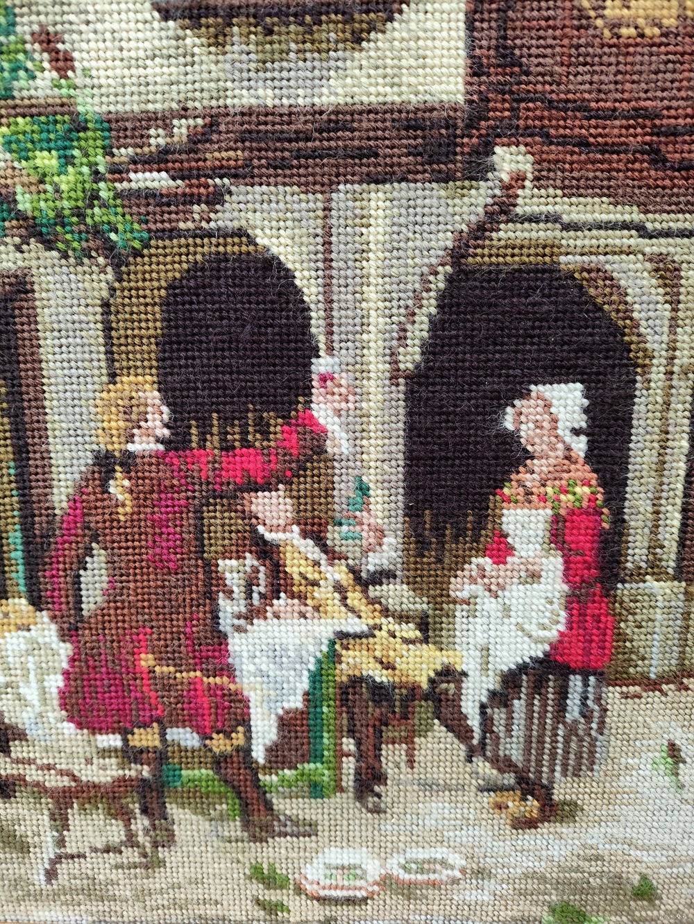 Это гобеленовое панно ручной работы, выполненное в технике вышивки крестом или иглой.