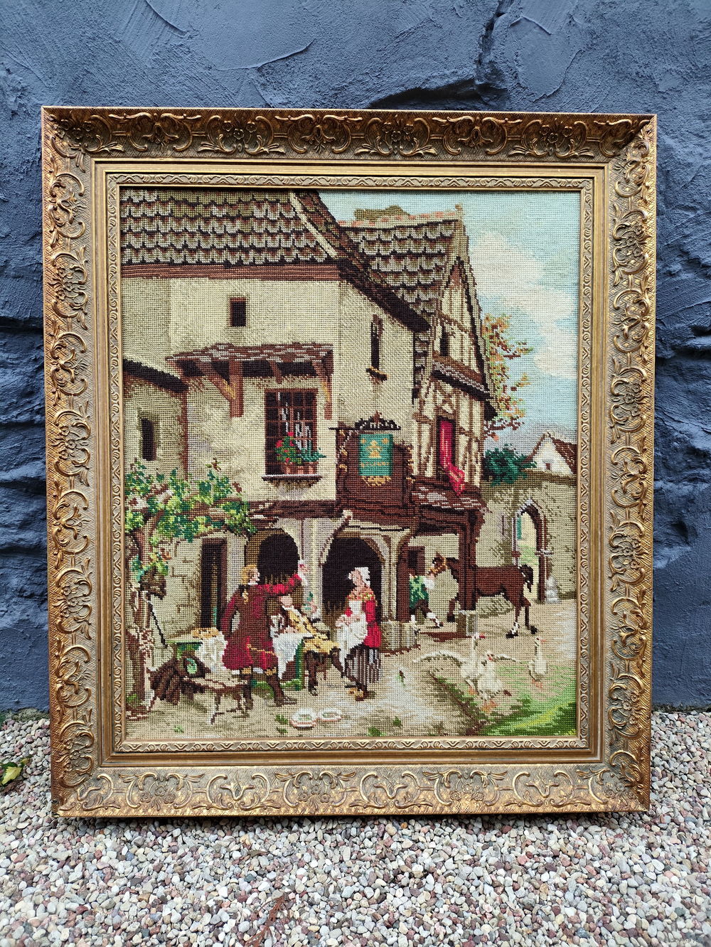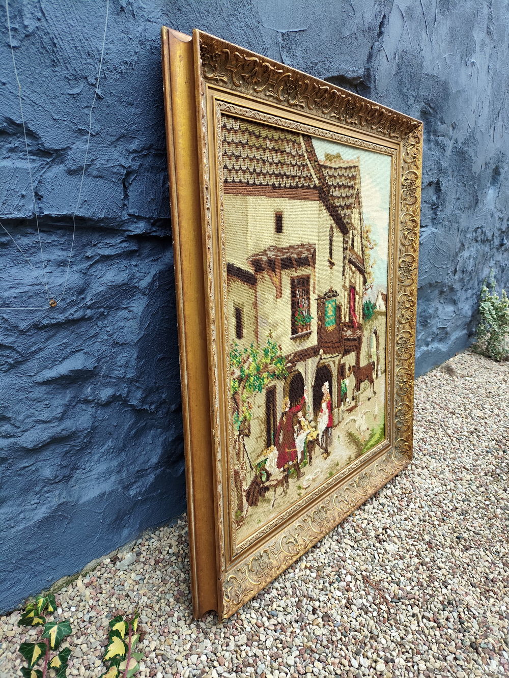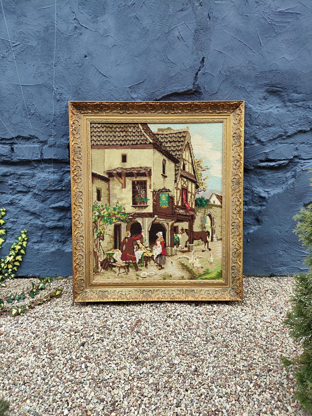 Это гобеленовое панно ручной работы, выполненное в технике вышивки крестом или иглой.