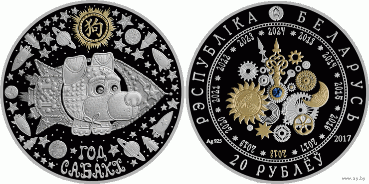 Год Собаки 20 рублей 2017 г. Китайский календарь