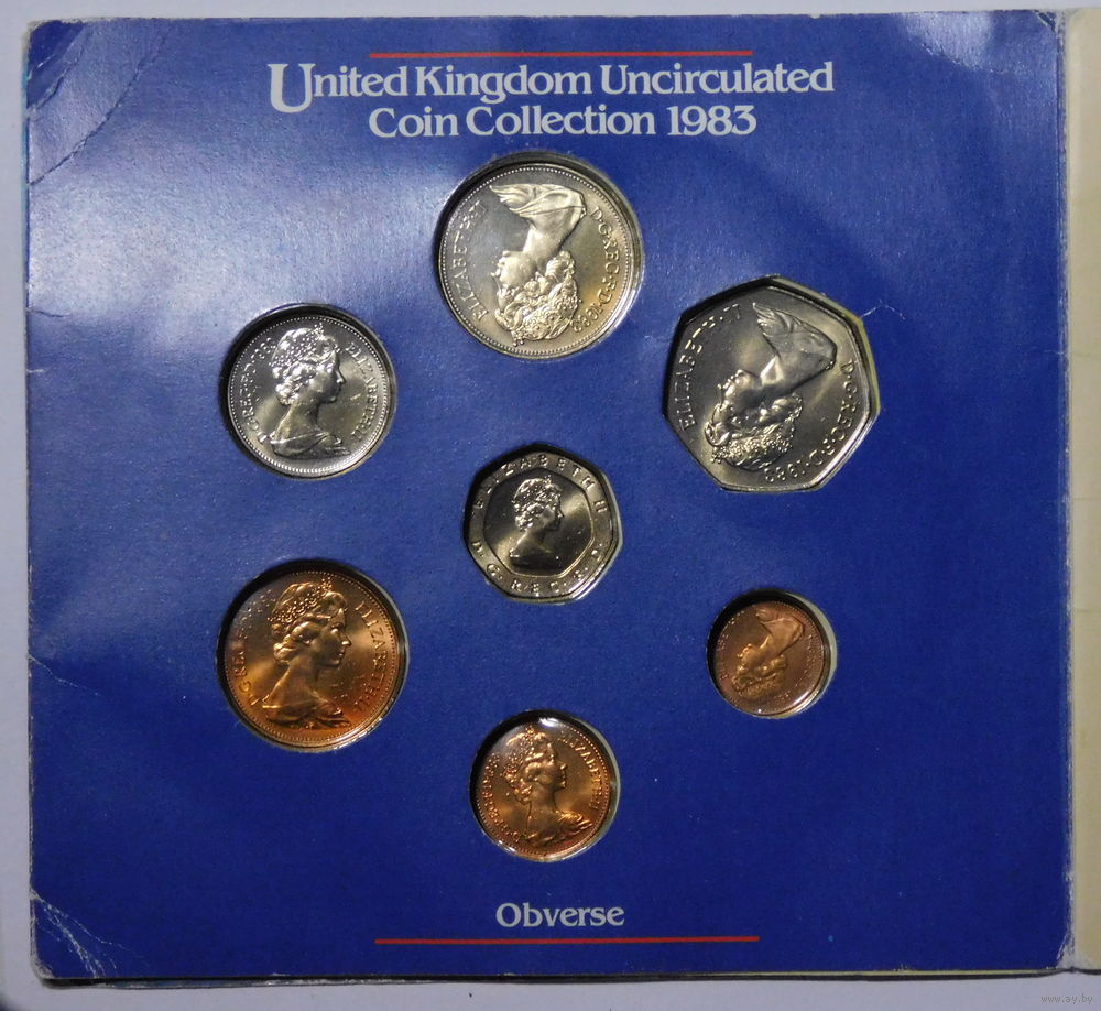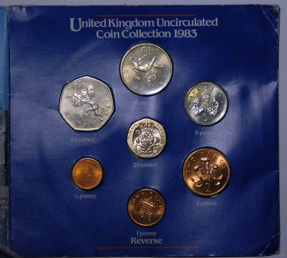 Годовой набор монет Британии 1983 (Люкс). Ярчайшие экземпляры aUNC. Блистер имеет следы бытования, всё-таки 42 года упаковке.