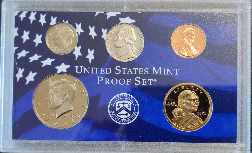 Годовой набор монет США 2001г. с одним долларом Сакагавея "Парящий орел" двор S (1; 10; 25; 50 центов + 1 доллар) _Proof Set