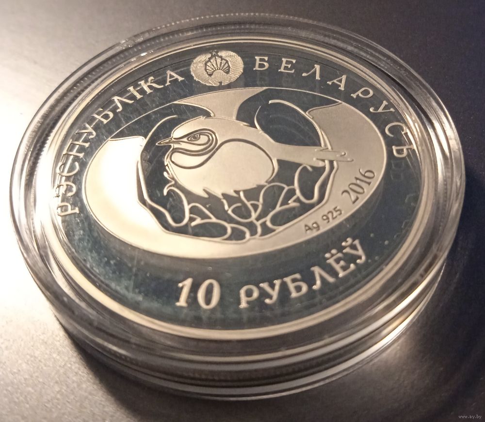 вверху – рельефное изображение Государственного герба Республики Беларусь, по кругу надпись: РЭСПУБЛІКА БЕЛАРУСЬ; в центре, в овале, – изображение птенца на стилизованных ладонях, под ним справа – год чеканки (на серебряной монете – проба сплава); внизу – номинал: 10 РУБЛЁЎ (на серебряной).
