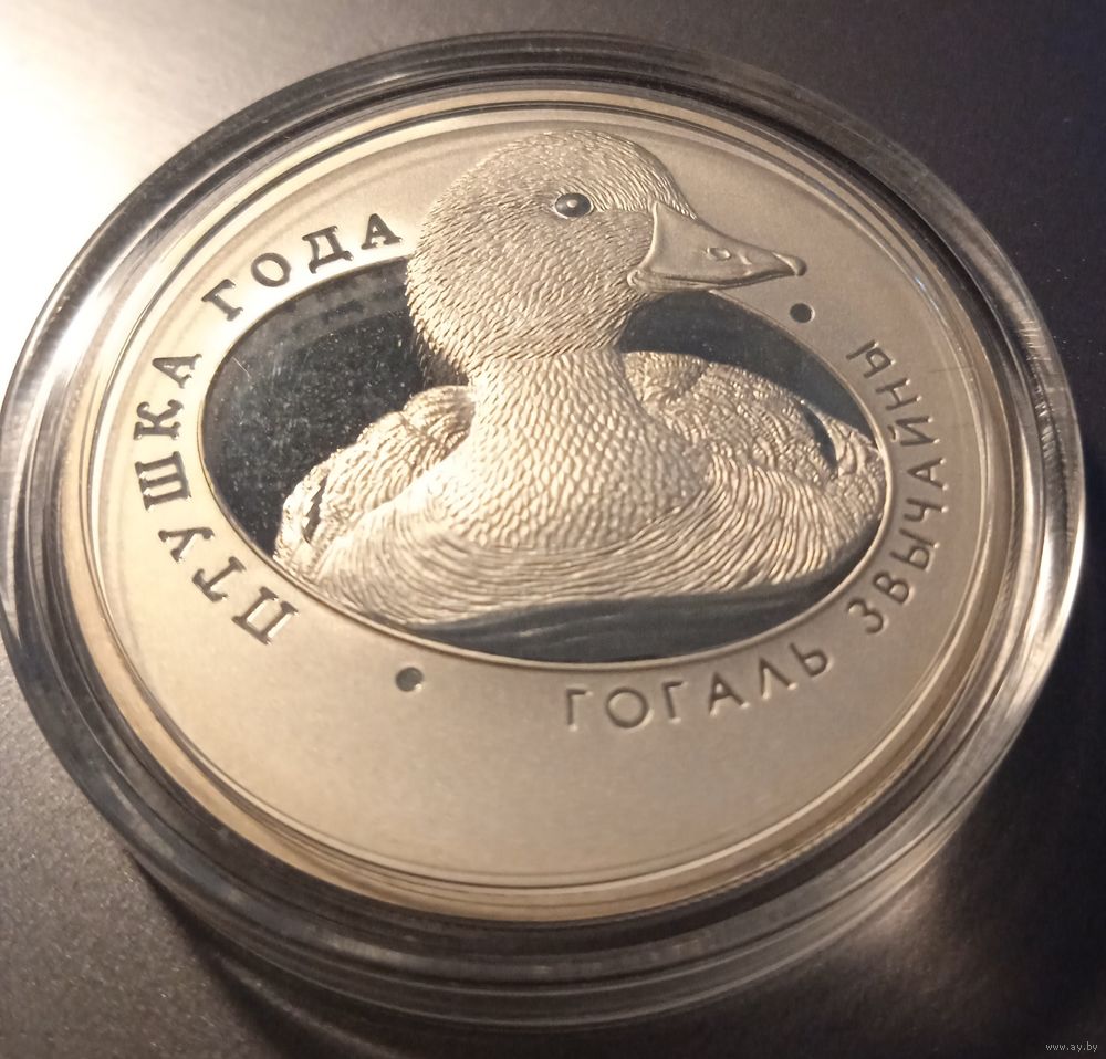 в центре, в овале, символизирующем яйцо, – рельефное изображение птицы; по овалу надписи: слева – ПТУШКА ГОДА, справа – ГОГАЛЬ ЗВЫЧАЙНЫ.