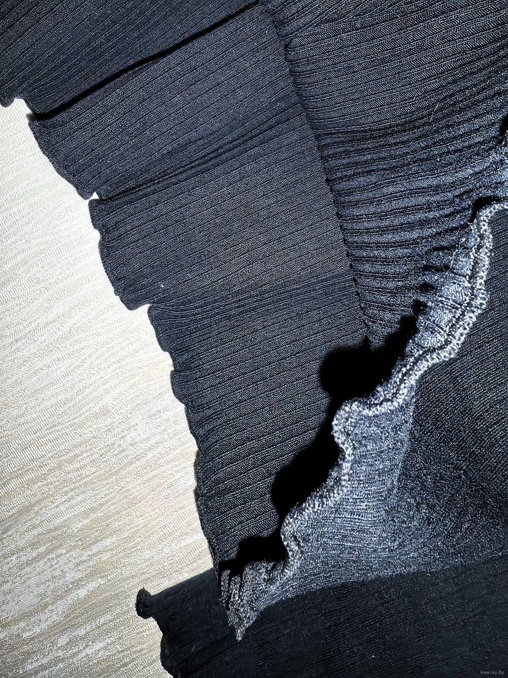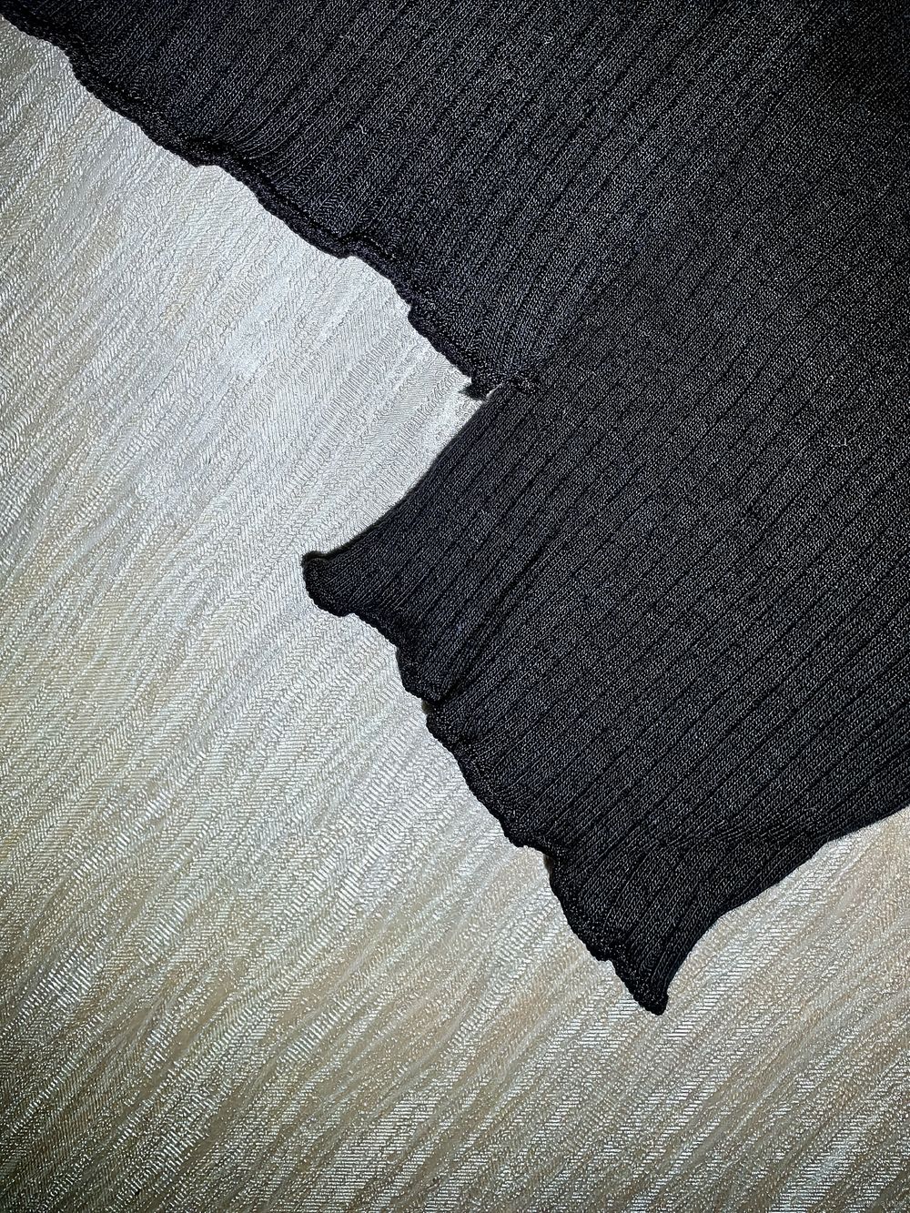 100% хлопок. Ткань в рубчик ("лапша"), по своей структуре хорошо тянется.