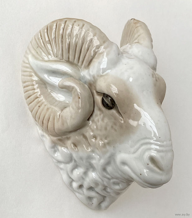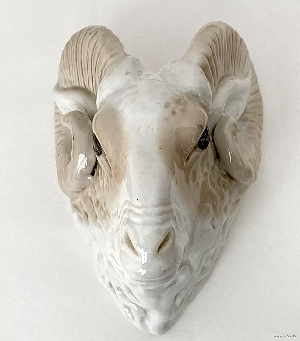 Фарфоровое кашпо времён СССР «Голова барана». Довольно редкое. Период 1960-70-е. Размер: 13х9. Левый рог сломан.