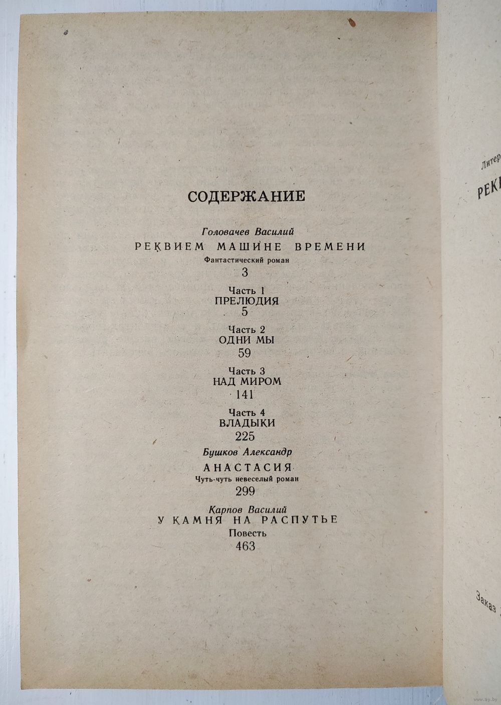 В книгу вошли роман известного писателя-фантаста В. Головачёва, посвящённый проблеме обратимости времени, а также произведения молодых авторов А. Бушкова и В. Карпова.
