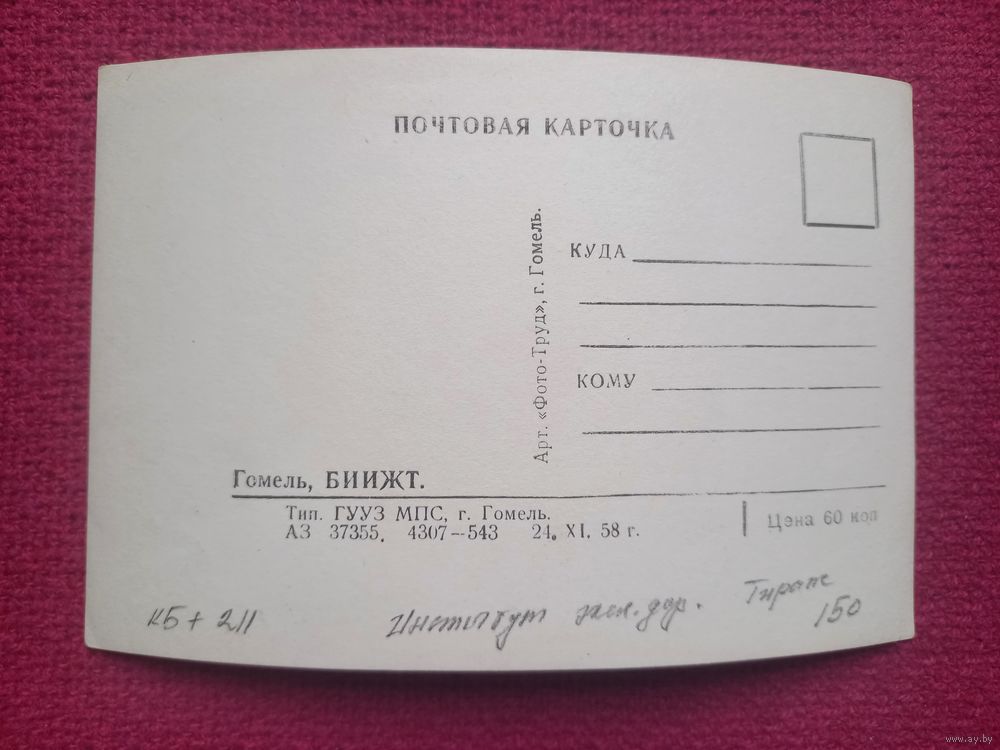 Гомель. БИИЖТ ( Белорусский институт инженеров железнодорожного транспорта ). ГУУЗ МПС г. Гомель. 1958 г. Чистая.
