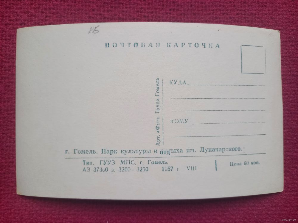 Гомель. Парк культуры и отдыха им. Луначарского. ГУУЗ МПС г. Гомель. 1957 г. Чистая.