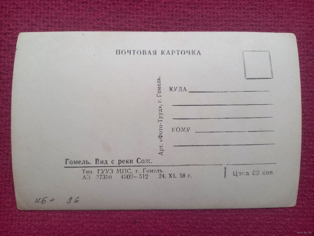 Гомель. Вид с реки Сож. ГУУЗ МПС г. Гомель. 1958 г. Чистая.