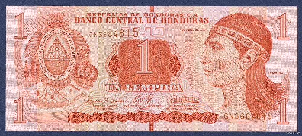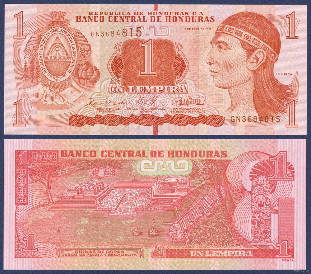 Гондурас, 1 лемпира 2022 г, P-96 (вождь Лемпира, руины древнего города майя - Копан), UNC