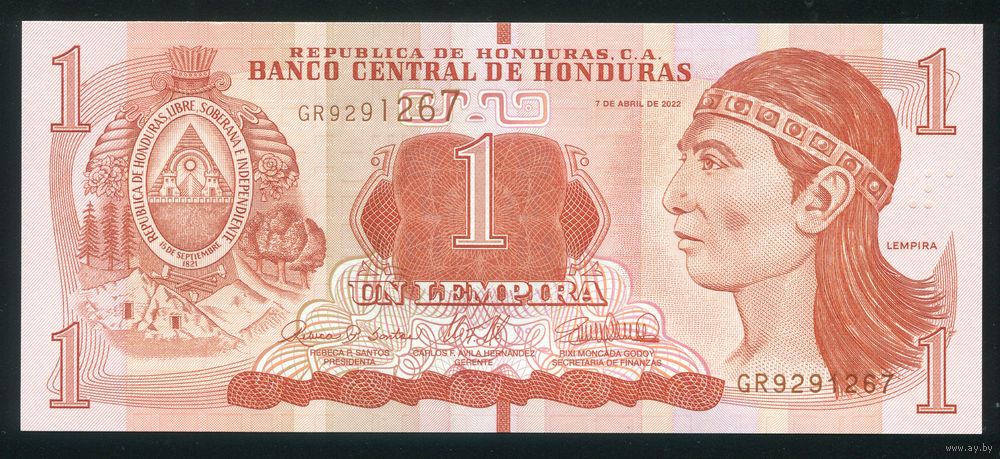 Гондурас 1 лемпира 2022 г. P96e. Серия GR. UNC