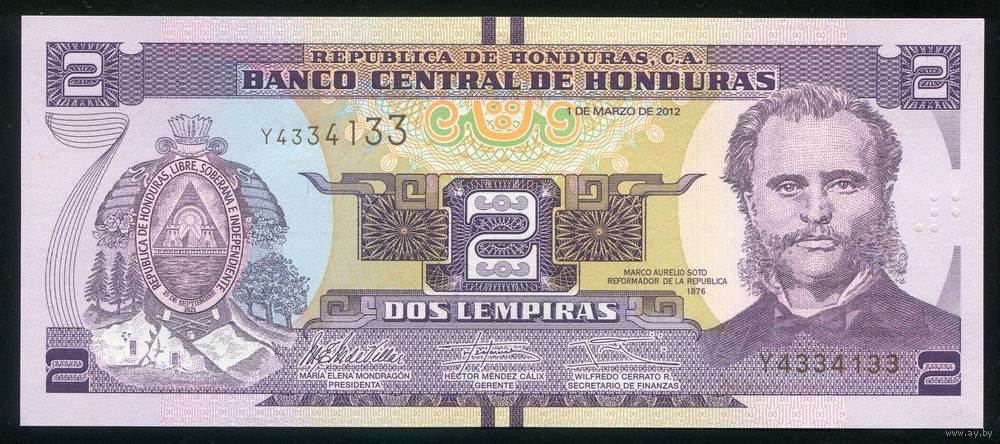 Гондурас 2 лемпира 2012 г. P97a. Серия Y. UNC