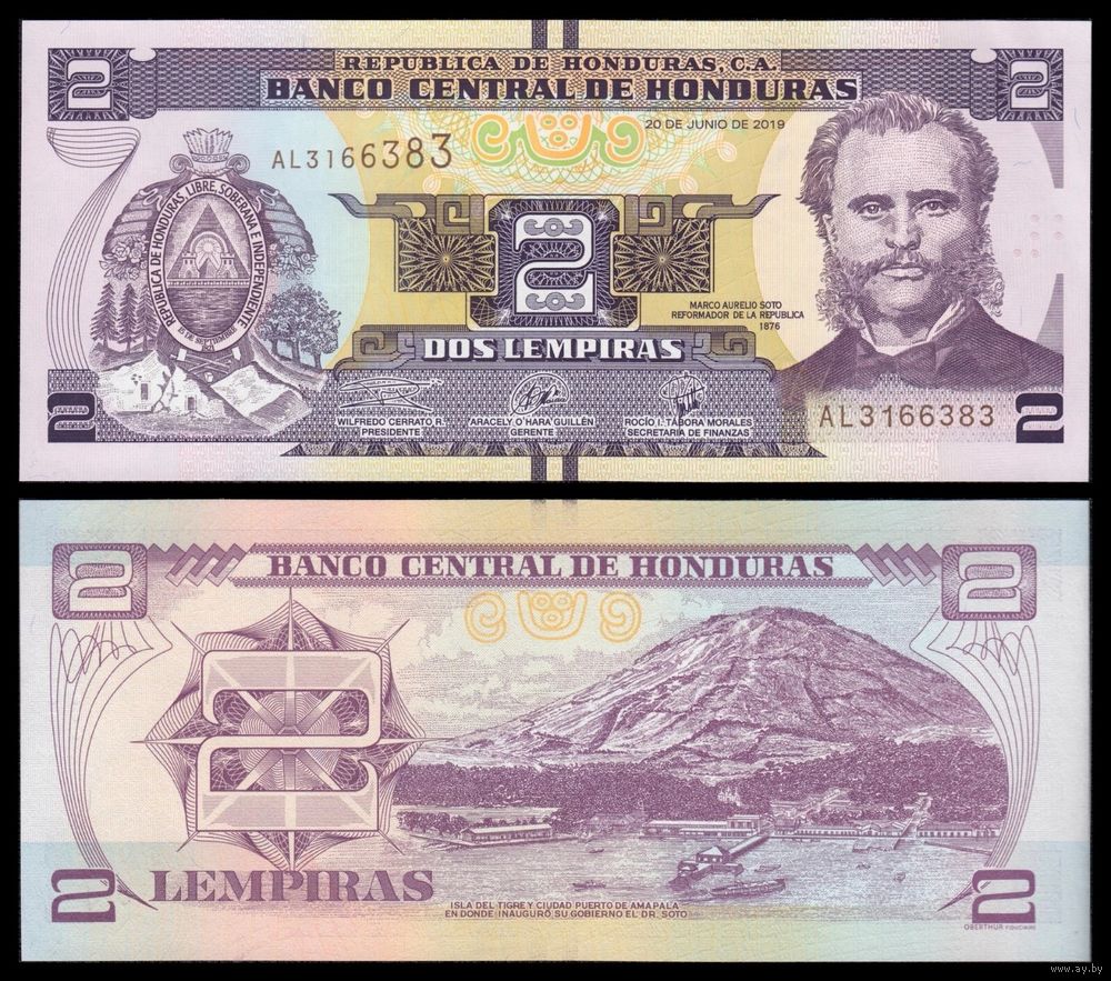 Гондурас 2 лемпира образца 2019 года UNC p97 серия AP
