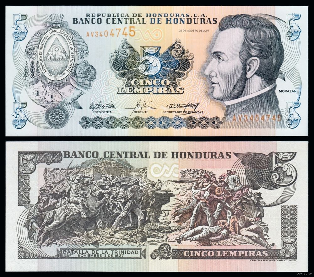 Гондурас 5 лемпира образца 2004 года UNC p85d серия AT