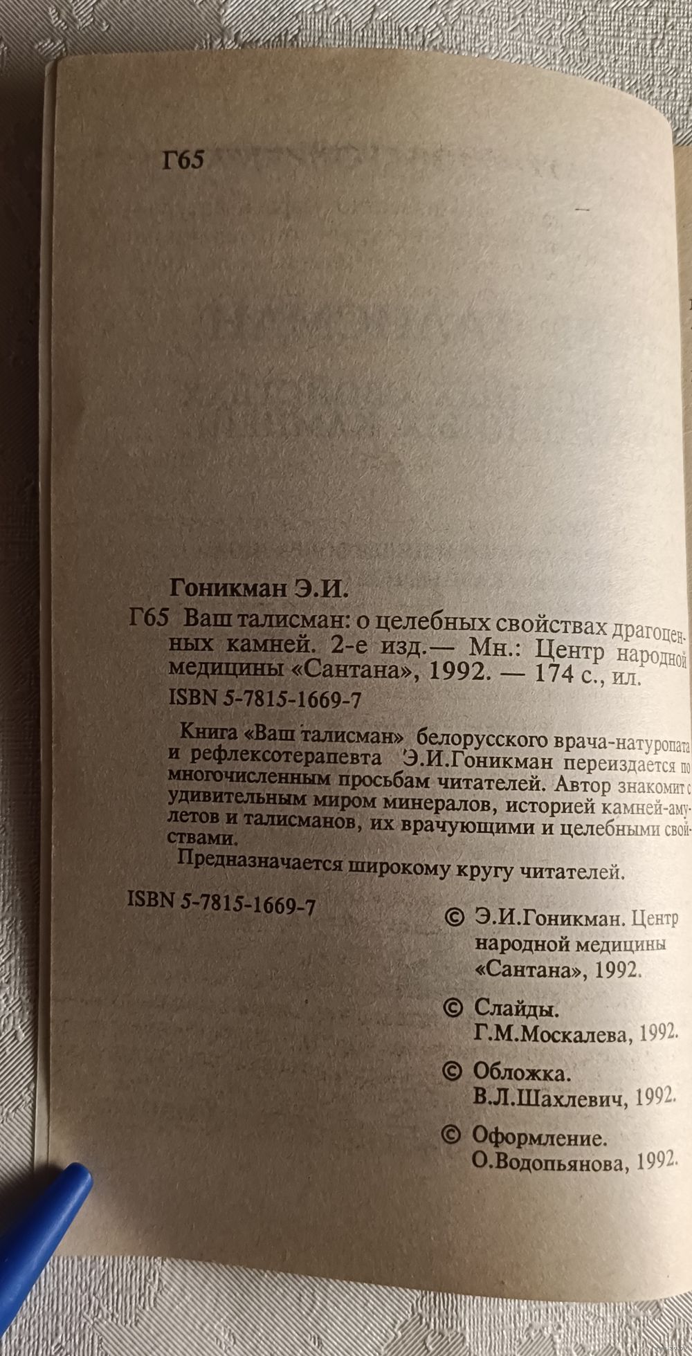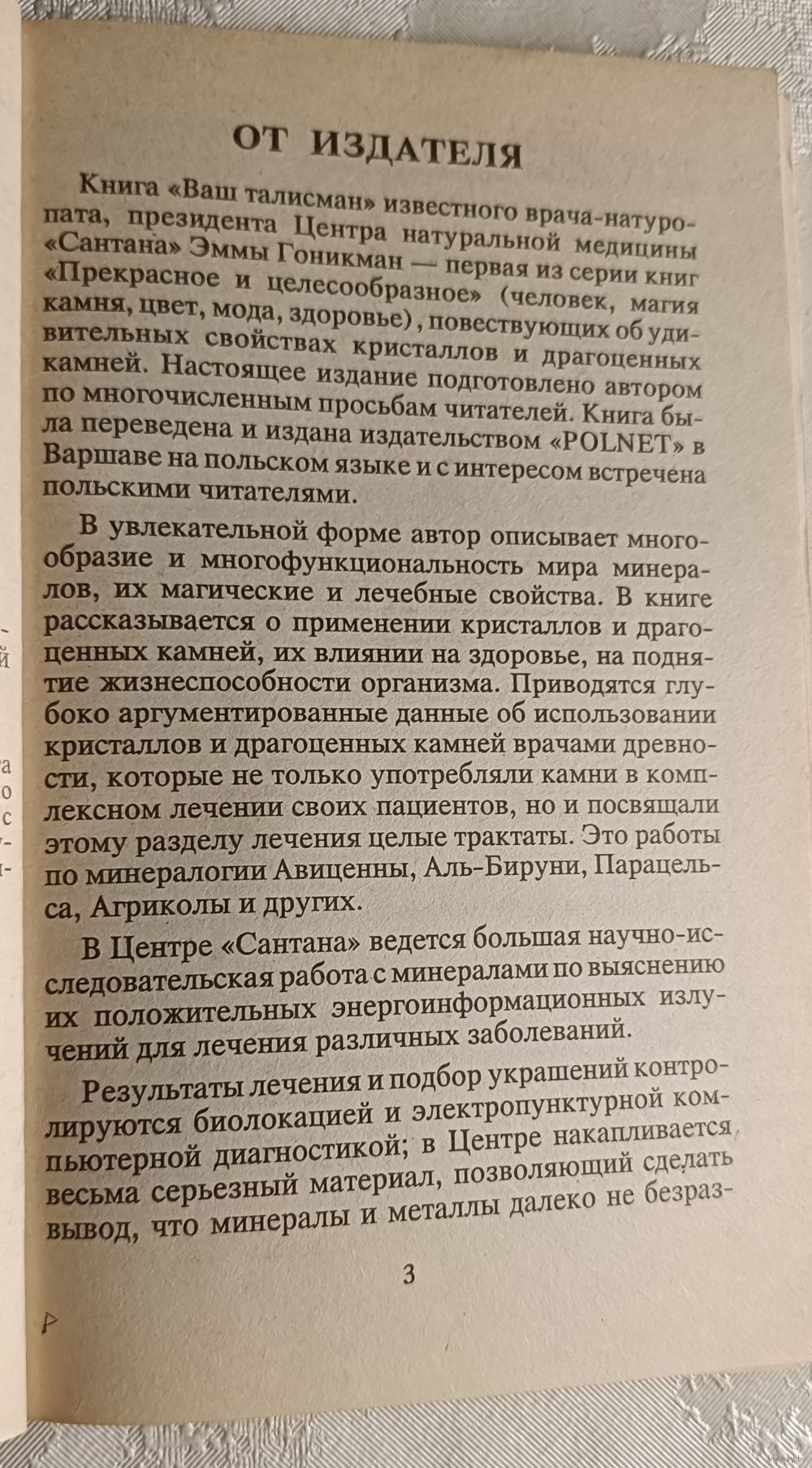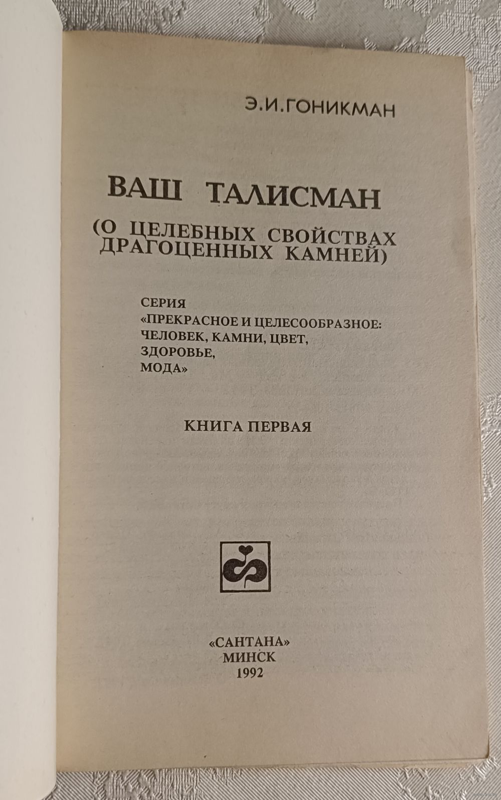 Гоникман Эмма. Ваш талисман: о целебных свойствах драгоценных камней. 2-е изд. — Мн.: Центр народной медицины «Сантана», 1992. 174 с., ил, мягкая обложка.