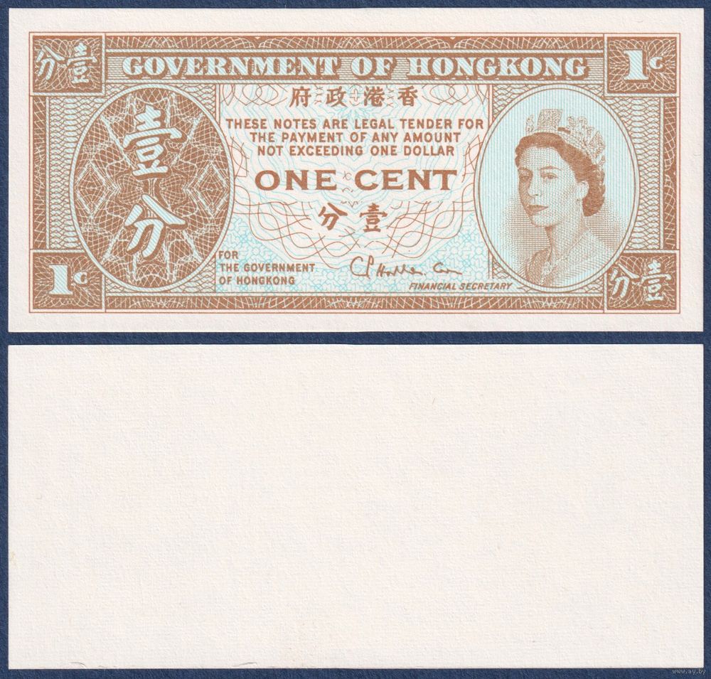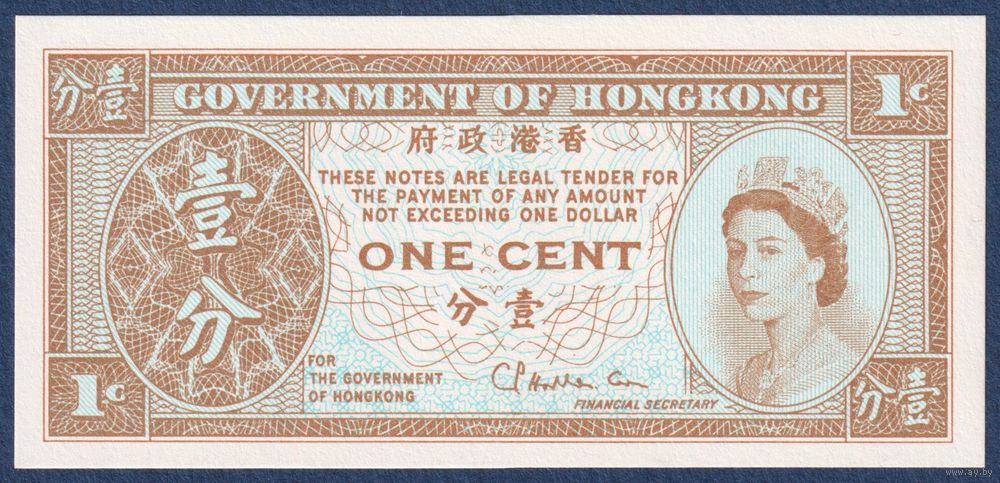 Гонконг, 1 цент 1971-1981 г., P-325b (королева Елизавета II), UNC