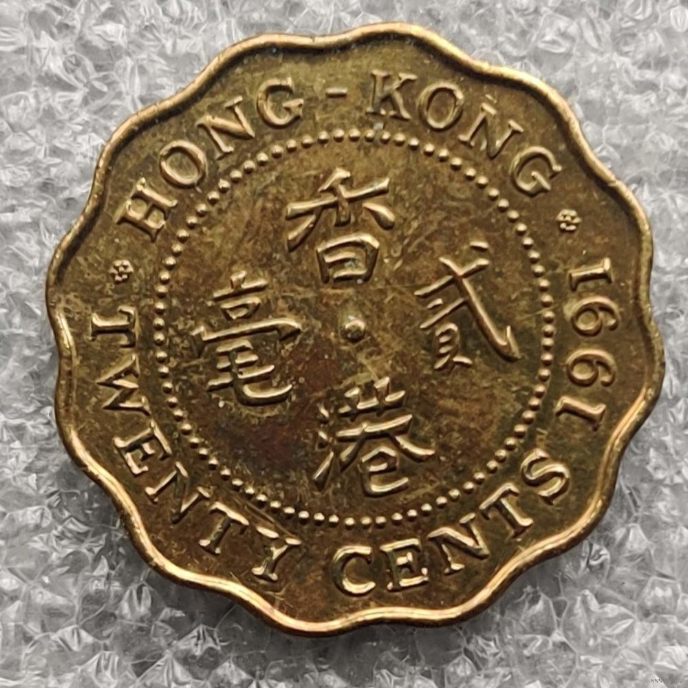 Номер KM # 59 Страна Гонконг Период Королева Елизавета II (1955 - 1992) Правитель Елизавета II Валюта Гонконгский доллар Вид чекана Регулярный чекан Номинал 20 центов Год 1985 - 1991 Гурт Гладкий Форма Круг с волнообразным краем Отношение авс/рев Медальное (0°) Материал Никелевая латунь Вес (g) 2,6 Диаметр (mm) 19 Толщина (mm) 1,37