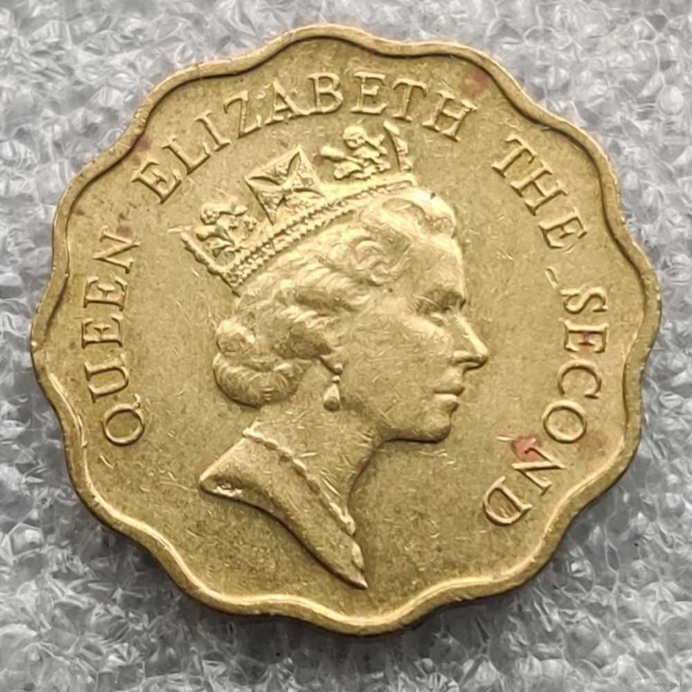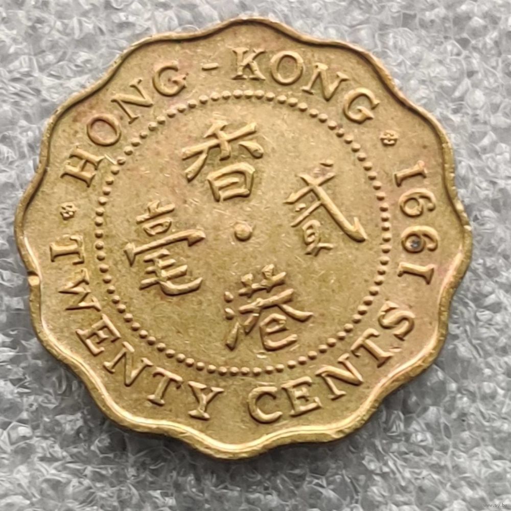 Номер  KM # 59  Страна  Гонконг  Период  Королева Елизавета II (1955 - 1992)  Правитель  Елизавета II  Валюта  Гонконгский доллар  Вид чекана  Регулярный чекан  Номинал  20 центов  Год  1985 - 1991  Гурт  Гладкий  Форма  Круг с волнообразным краем  Отношение авс/рев  Медальное (0°)  Материал  Никелевая латунь  Вес (g)  2,6  Диаметр (mm)  19  Толщина (mm)  1,37