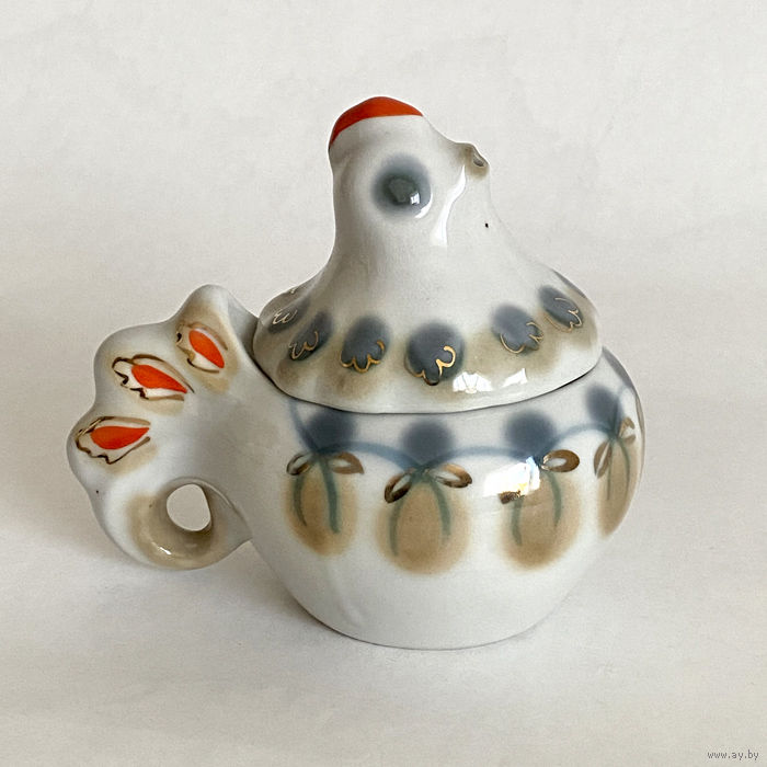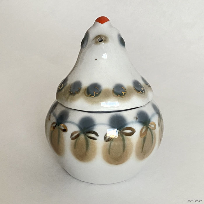 Винтажная фарфоровая горчичница "Курочка". Полонне, СССР. Высота 9 см. Состояние отличное. Дефектов нет, позолота не затерта.