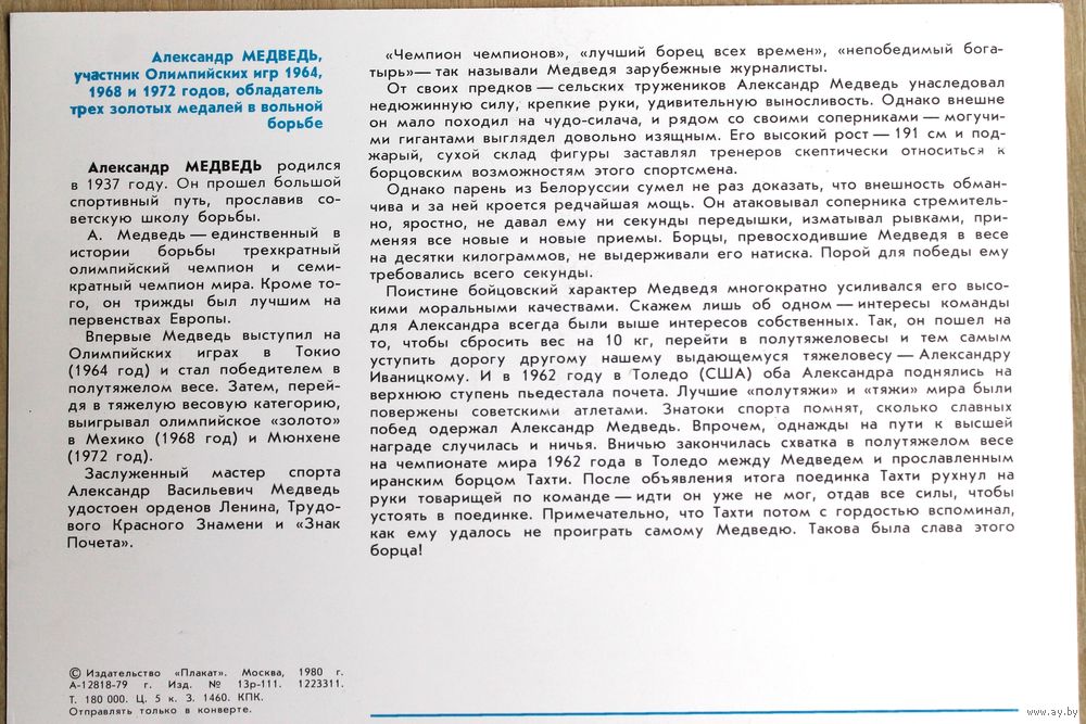 Покупатель выходит на связь в течение 3-х суток с момента покупки лота. В Минске расчёт наличными при встрече (ст. метро Партизанская). В другой город РБ вышлю посылку (плюс услуги почты). Наложенным не высылаю.