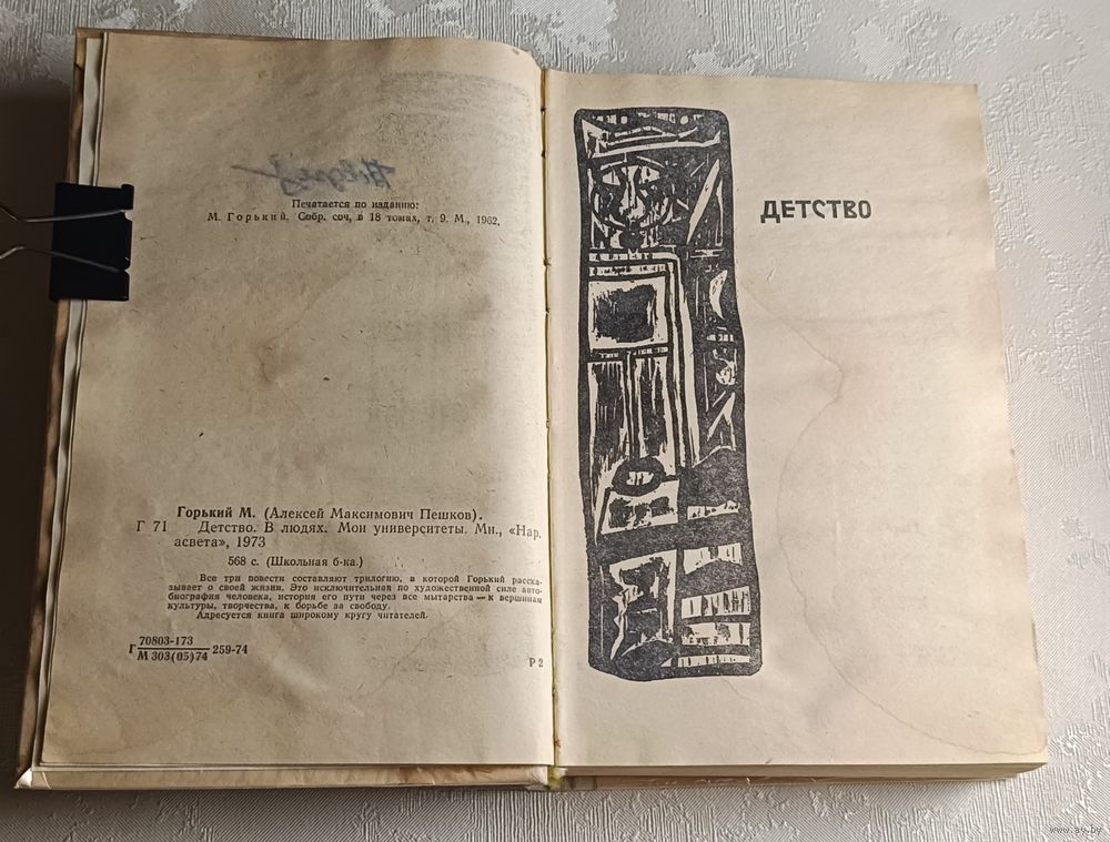 Горький Максим. Детство. В людях. Мои университеты. Мн., «Нар асвета», 1973, 568 с. (Школьная б-ка.)