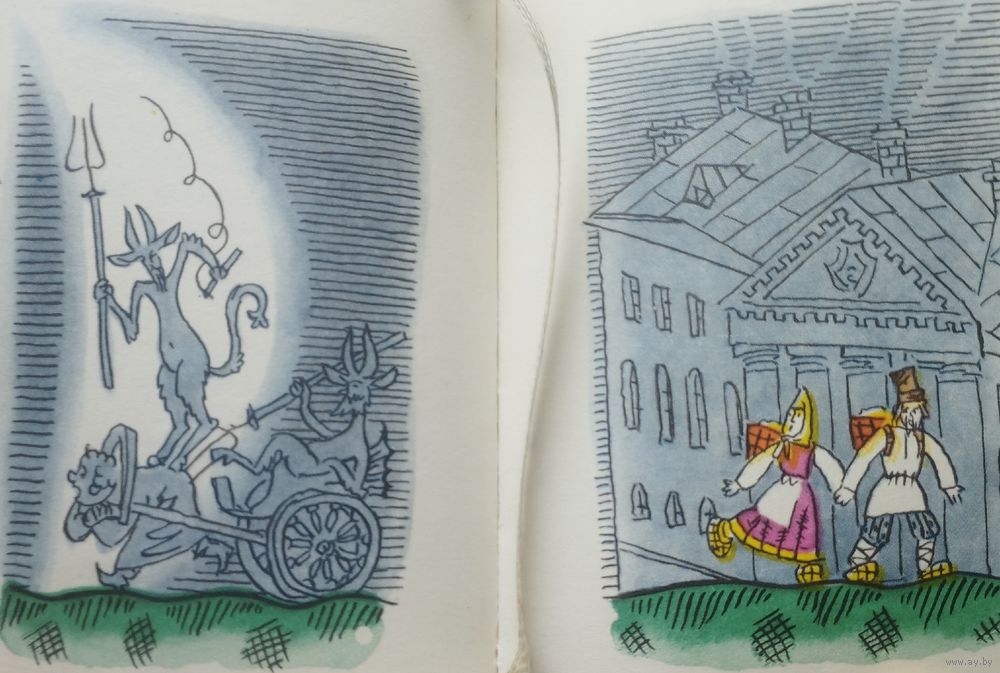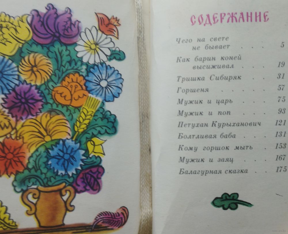 В книге шесть сказок о народном уме. По сказке, пересказанной Л. Толстым названа книга. Остальные сказки из книг собирателей А. Афанасьева, Д. Садовникова, А. Смирнова. С о д е р ж а н и е: А. Афанасьев. Горшеня. А. Смирнов. Петухан Куриханыч. и другие забавные русские народные сказки. Владельческая печать.
