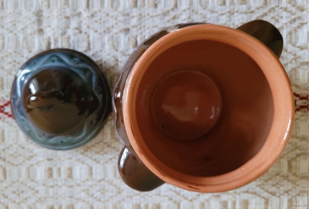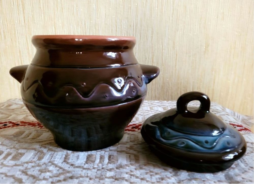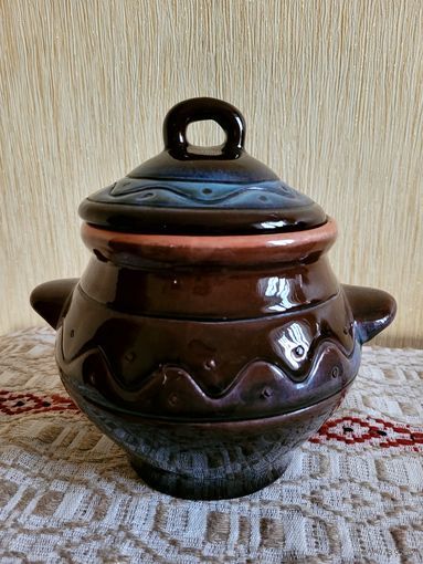 Горшочек для запекания, объём 1 л, высота 13 см, с крышкой - 18 см. Обливная керамика, Мозырьский завод художественных изделий, винтаж периода СССР. Состояние нового, не использовался, даже этикетка не отклеена.