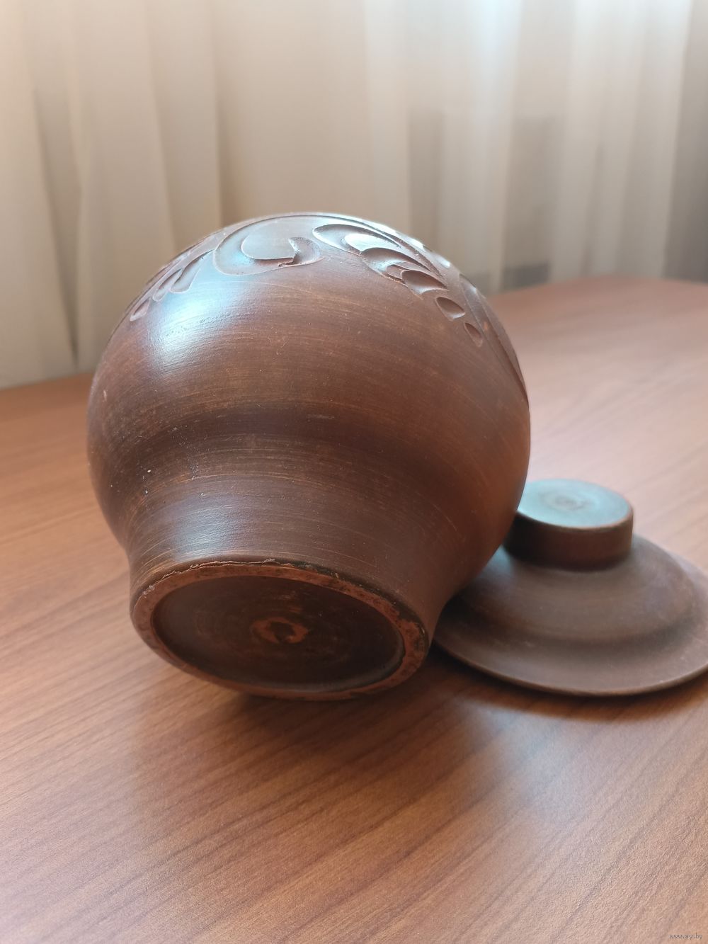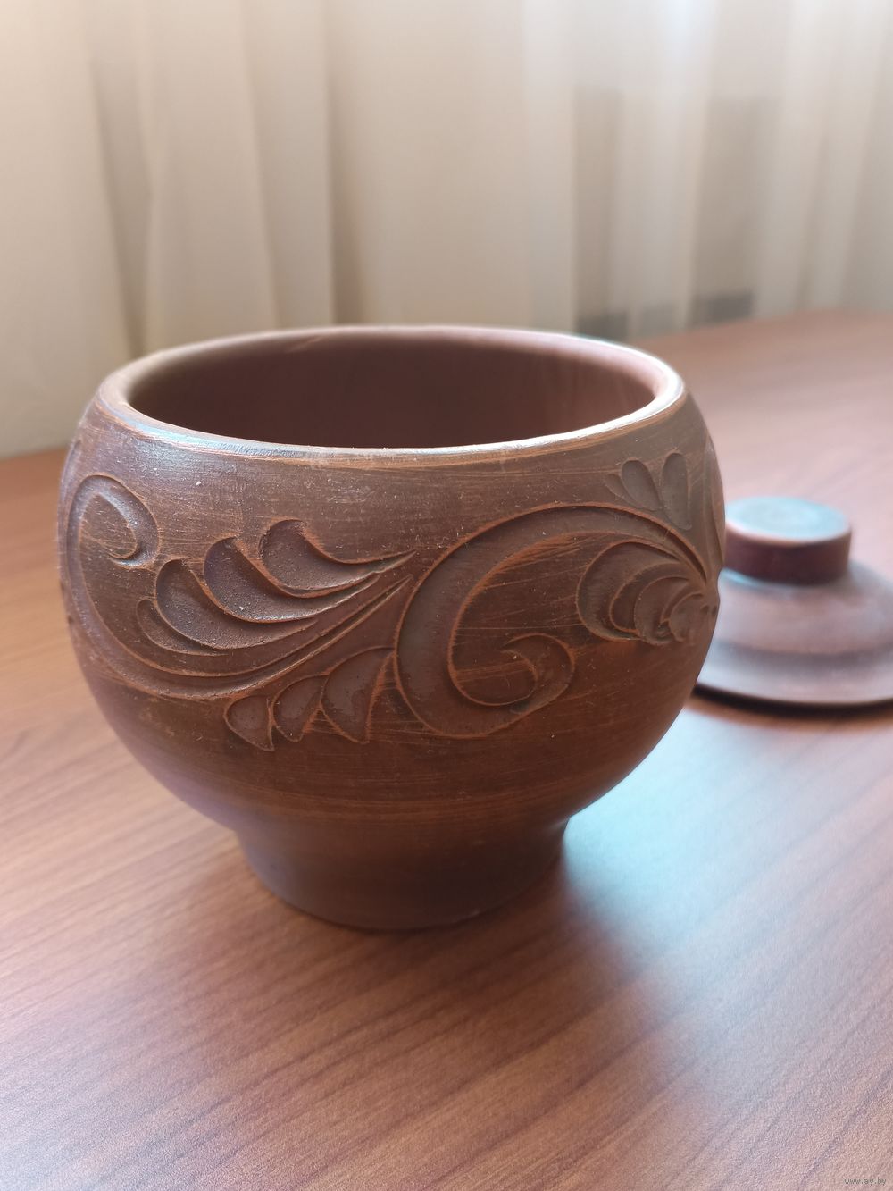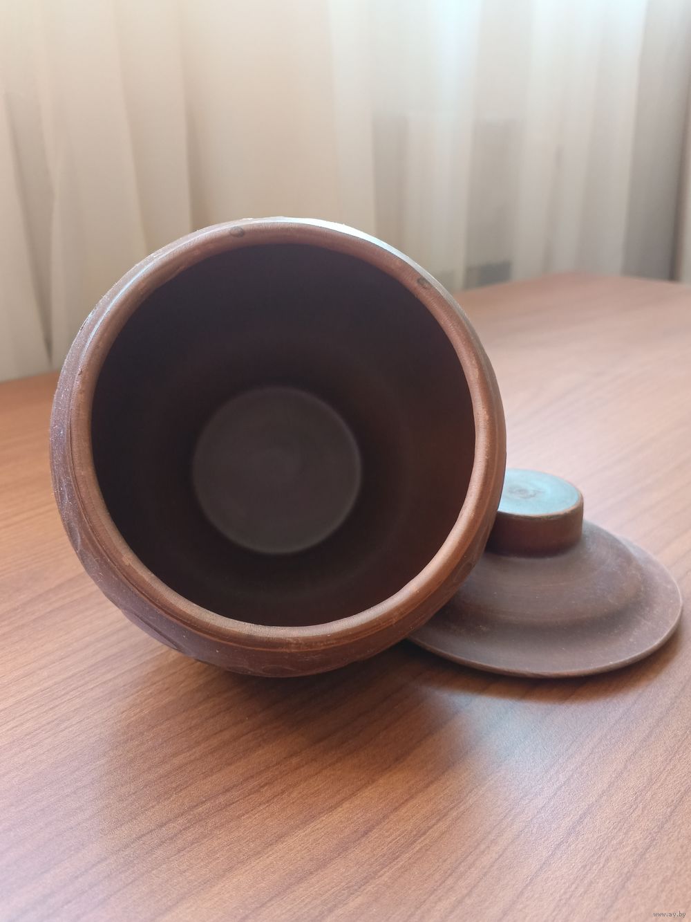 Горшок высота 10см, диаметр горловины 9,5 см, диаметр основания 7 см, диаметр горшка 13 см, объём 550 мл. Материал красная глина. Предназначен для запекания в духовке, в печке СВЧ. Вес 500 грамм. Выполнен по технологии молочения.