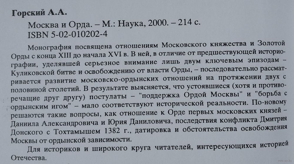 Горский А.А. Москва и Орда. Институт Российской истории РАН М. Наука 2000 г. 214 стр. Твердый переплет, увеличенный формат.