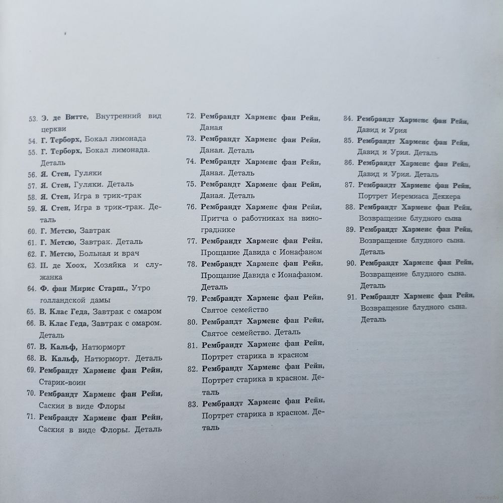 Альбом знакомит с работами голландских и фламандских художников XVII в., включая значительный подбор произведений Рембрандта и Рубенса.