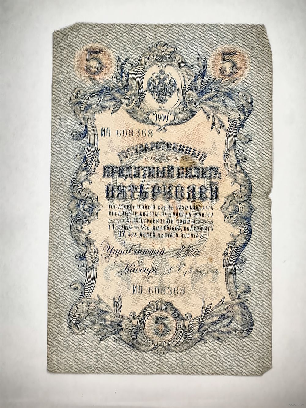 Государственный кредитный билет 5 рублей, номер ИО 608368