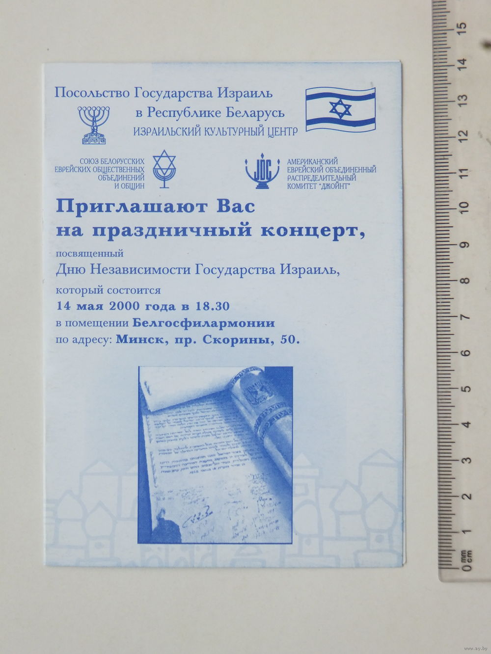 Государство Израиль приглашение на концерт Минск 2000 г