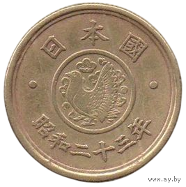 ГОСУДАРСТВО ЯПОНИЯ. 5 ЙЕН /иен/ 1948. Хирохито (Сёва). ФАУНА. ГОЛУБЬ.
