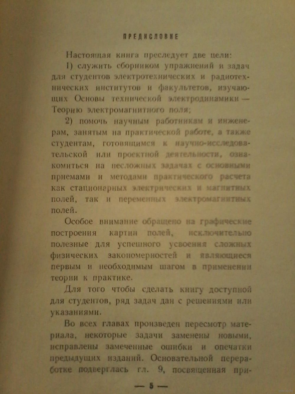 Настоящая книга служит сборником упражнений и задач для студентов электротехнических и радиотехнических институтов и факультетов, изучающих теорию электромагнитного поля, и знакомит их с основными методами и приемами практического расчета как стационарных электрических и магнитных полей, так й переменных электромагнитных полей. Особое внимание обращено на графическое построение картин полей, весьма полезных для успешного усвоения сложных физических закономерностей и являющихся первым и необходимым шагом в приложении теории к практике. Для того чтобы сделать книгу доступной для студентов, ряд задач дан с решениями и указаниями.