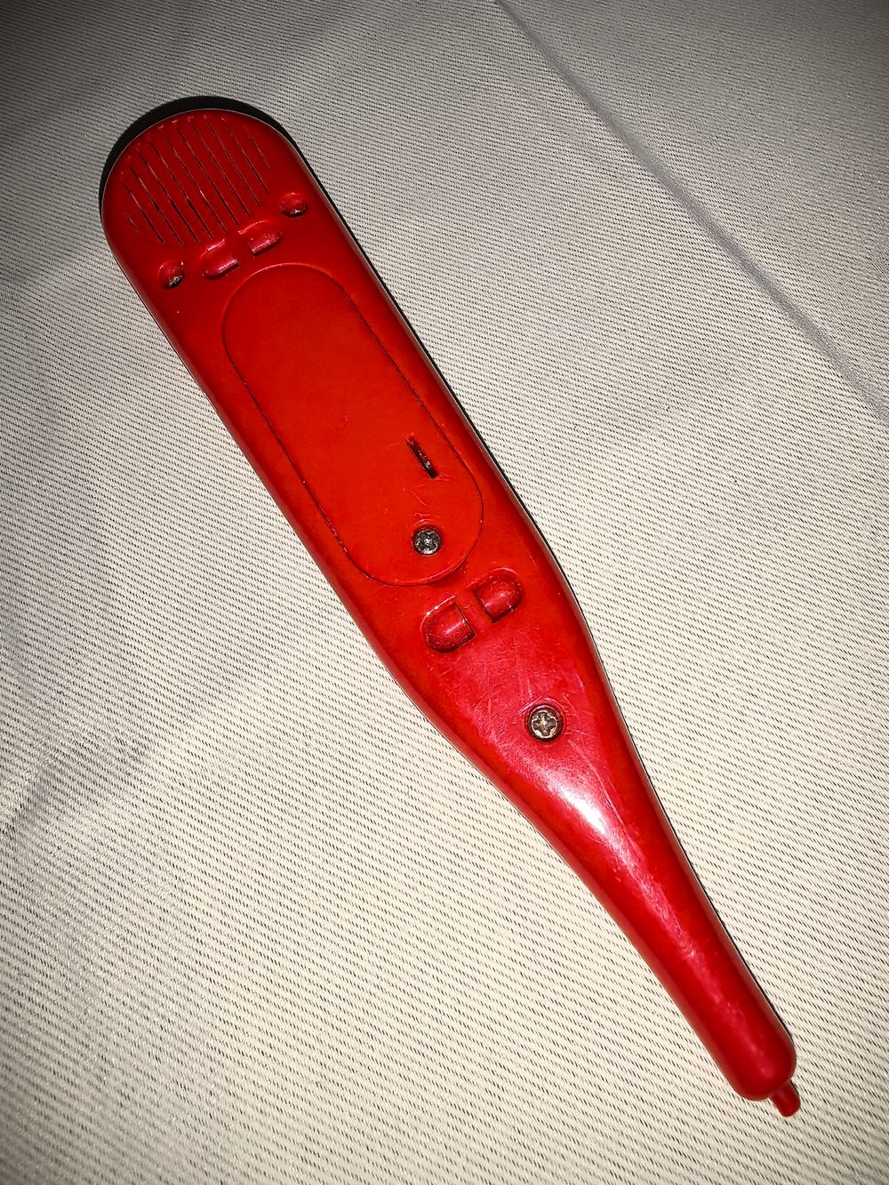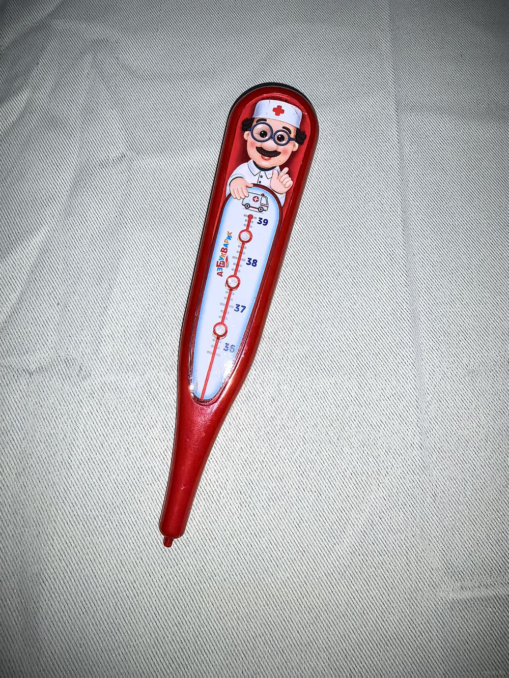 Внизу кнопочка, при нажатии звучат разные фразы "температурного" характера. Забавная игрушка.