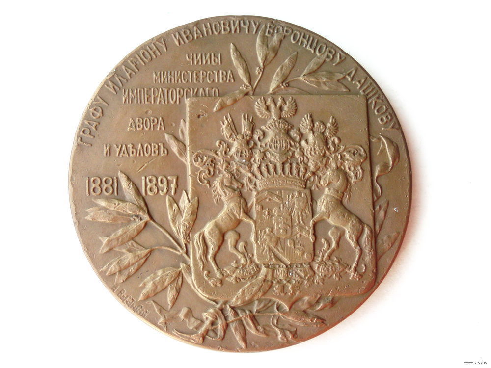 Медаль была заказана чинами Министерства Императорского двора и уделов для поднесения графу Илариону Ивановичу Воронцову-Дашкову, возглавлявшему министерство в 1881 - 1897 годах.